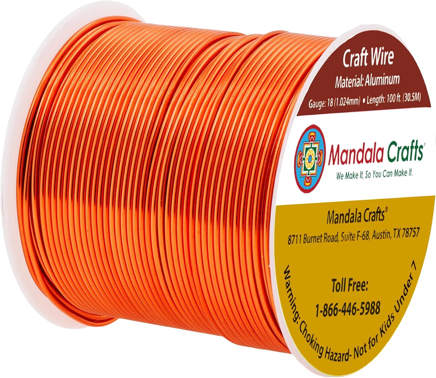 Mandala Crafts 18 Gauge Anodized Aluminum Craft Wire for Jewelry Making - 100 FT Colored Flexible Burnt Orange Wire - Bendable for Bonsai Armature Crafting Sculpting