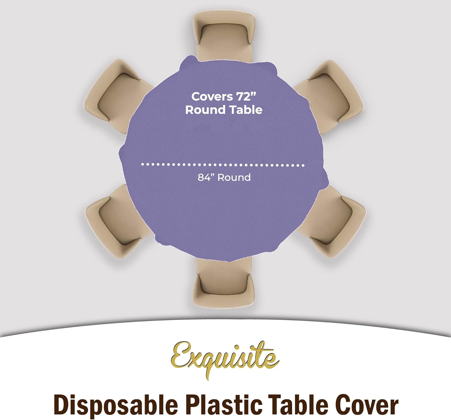 - PREMIUM QUALITY PROTECTION: This 12 pack of 84 in. Lavender Round plastic tablecloths will cover any table up to 7 feet. Unlike your typical paper table clothes these disposable table covers for parties are spill and waterproof!!!