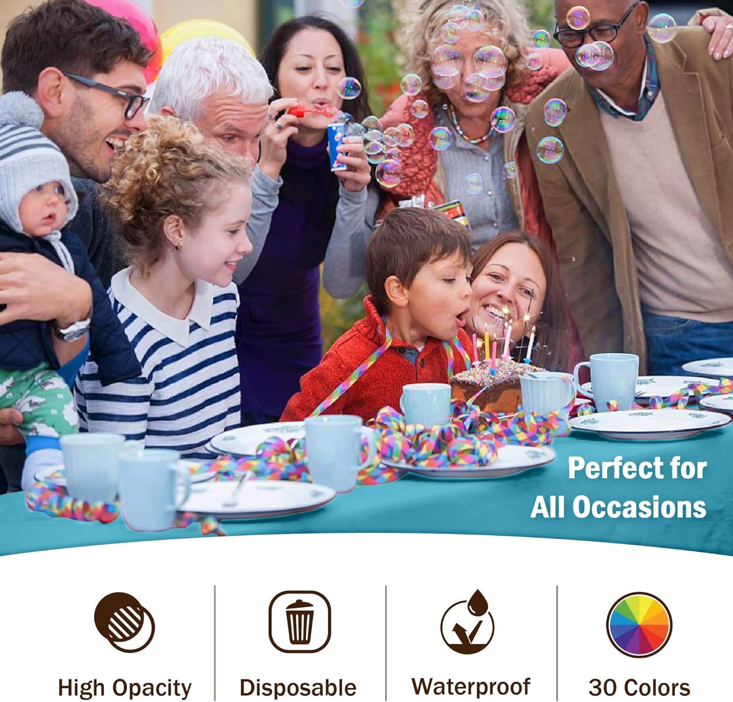 - HIGH OPACITY: covers any table with minimal transparency. Great plastic tablecoth for parties, weddings, holdiay party, , birthday parties, christmas, thanksgiving dinner, bbq, and any other color themed event.