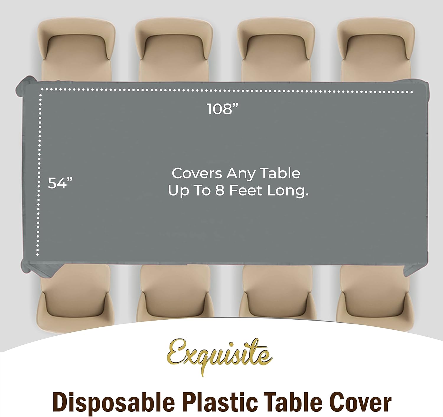 - 54" x 108" - covers any table up to 8 ft.