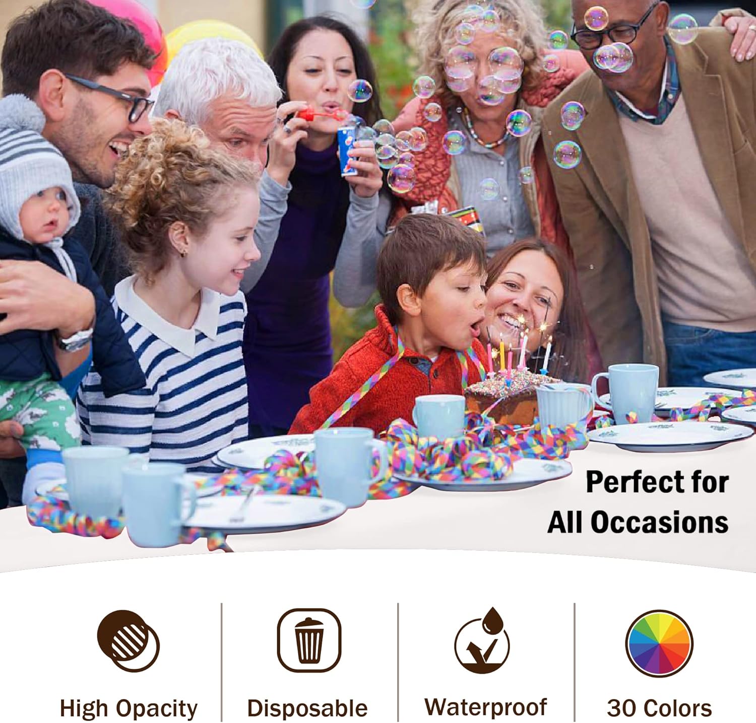 - High opacity: covers any Table with minimal transparency. Great plastic Tablecloth For parties, weddings, holiday party, birthday parties, Christmas, thanksgiving dinner, BBQ, and any other color themed event.