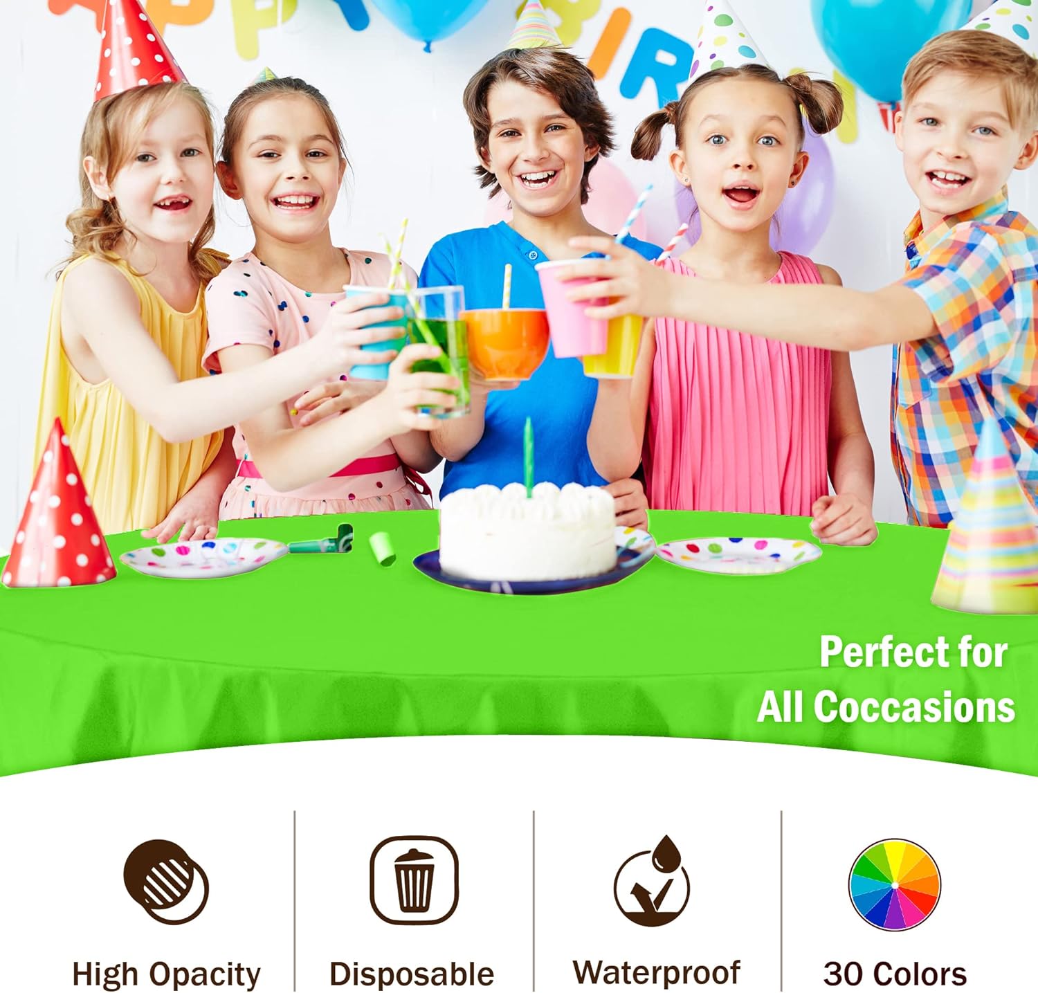 - INCLUDES: 12 heavy duty disposable Lime Green plastic table cloth that will cover your table for protection and is great for homes with children, kitchen tables, dinning tables, dinners, family outings. bbq's and more!!!