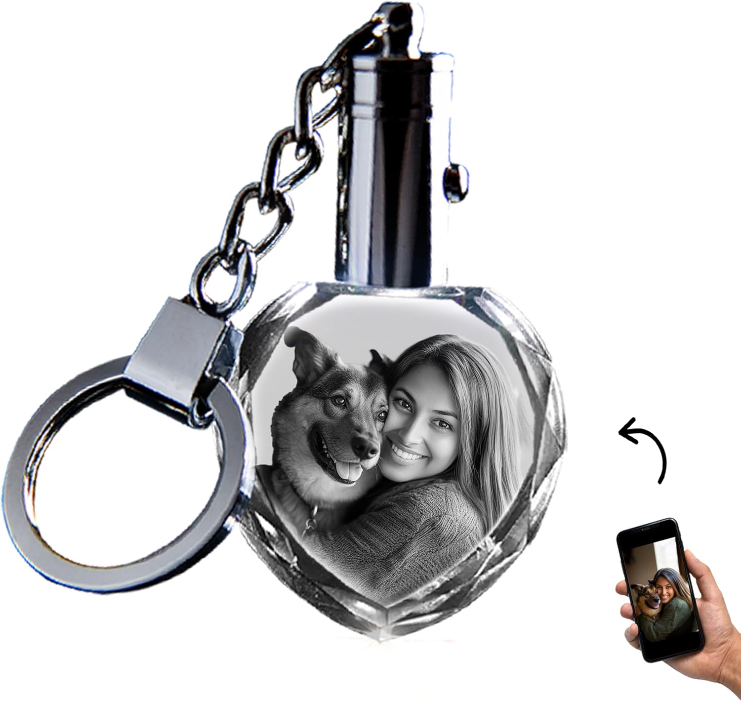 3D innovation Personalized Crystal Keychain Photo with LED Light Custom Laser Etched Key Chain, Valentines Gifts Keepsake