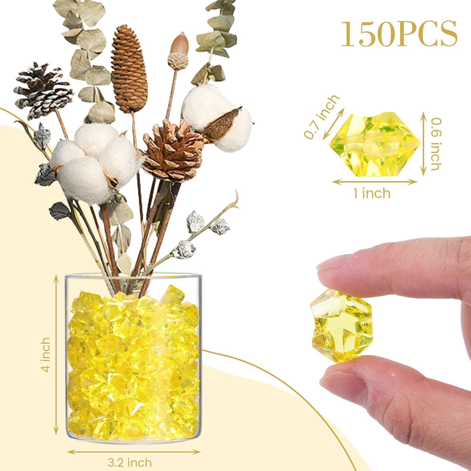 - Package includes 150 pcs yellow acrylic ice rocks.
