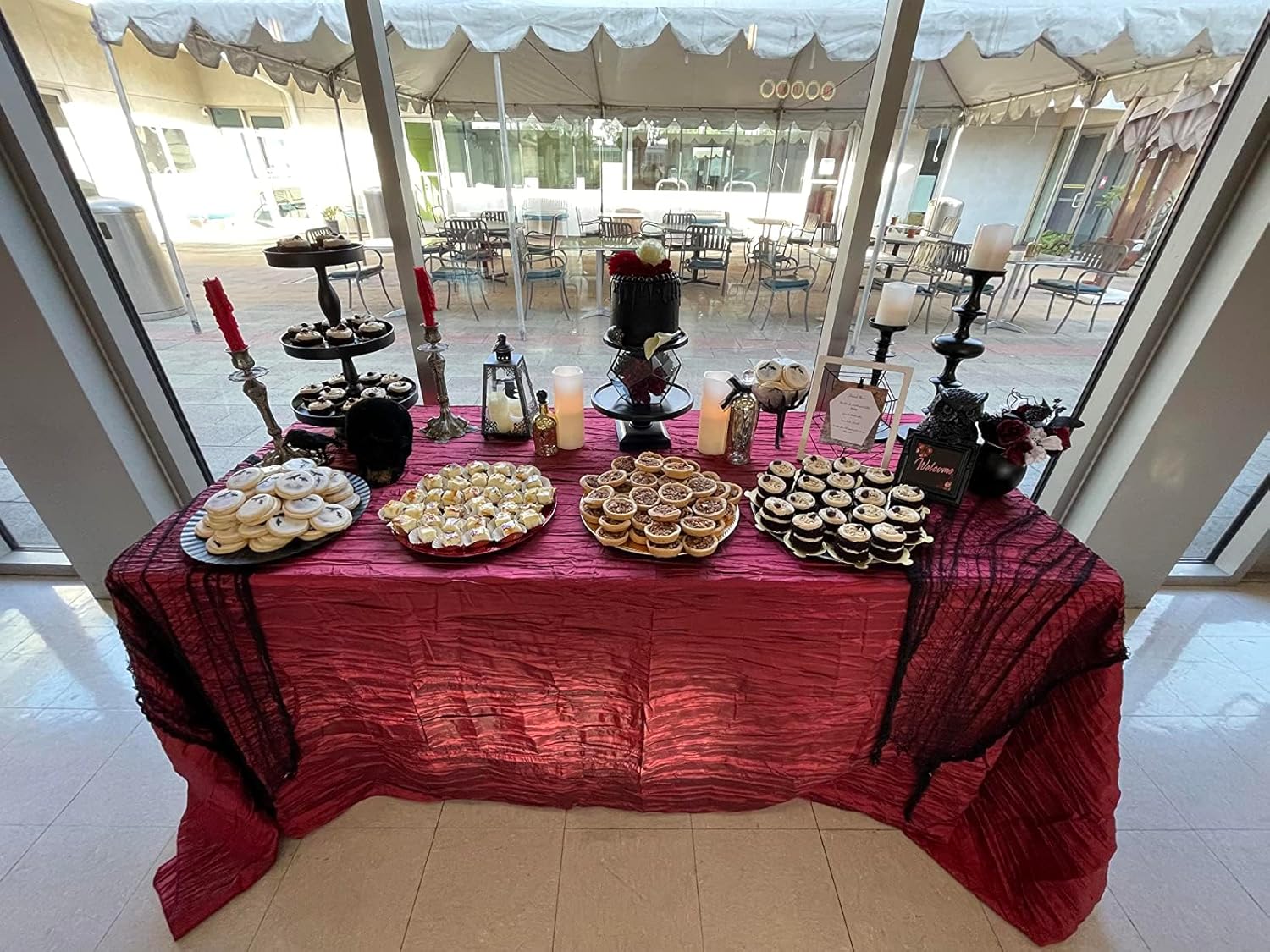 - If you are styling a wedding or special event that calls for exquisite designs and modern elegance, our crinkle taffeta table linen for wedding reception tables will definitely fit the bill. When used to complement your wedding chair covers or as a wedding reception hall accent, the textured look of crushed or crinkle taffeta will definitely help make a stylish statement.