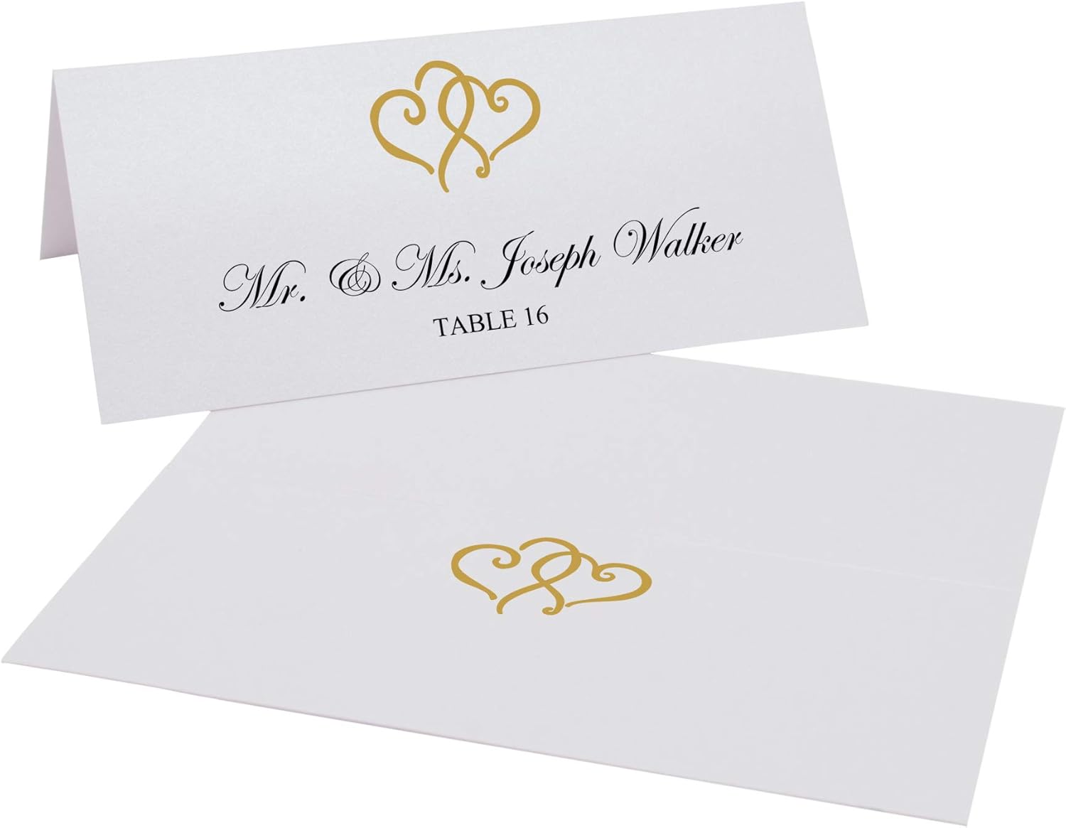 Linked Hearts Printable Place Cards, Gold (Choose Color), Set of 150 (25 Sheets), Laser & Inkjet Printers - Wedding, Party, Dinner, and Special Events - Made in the USA