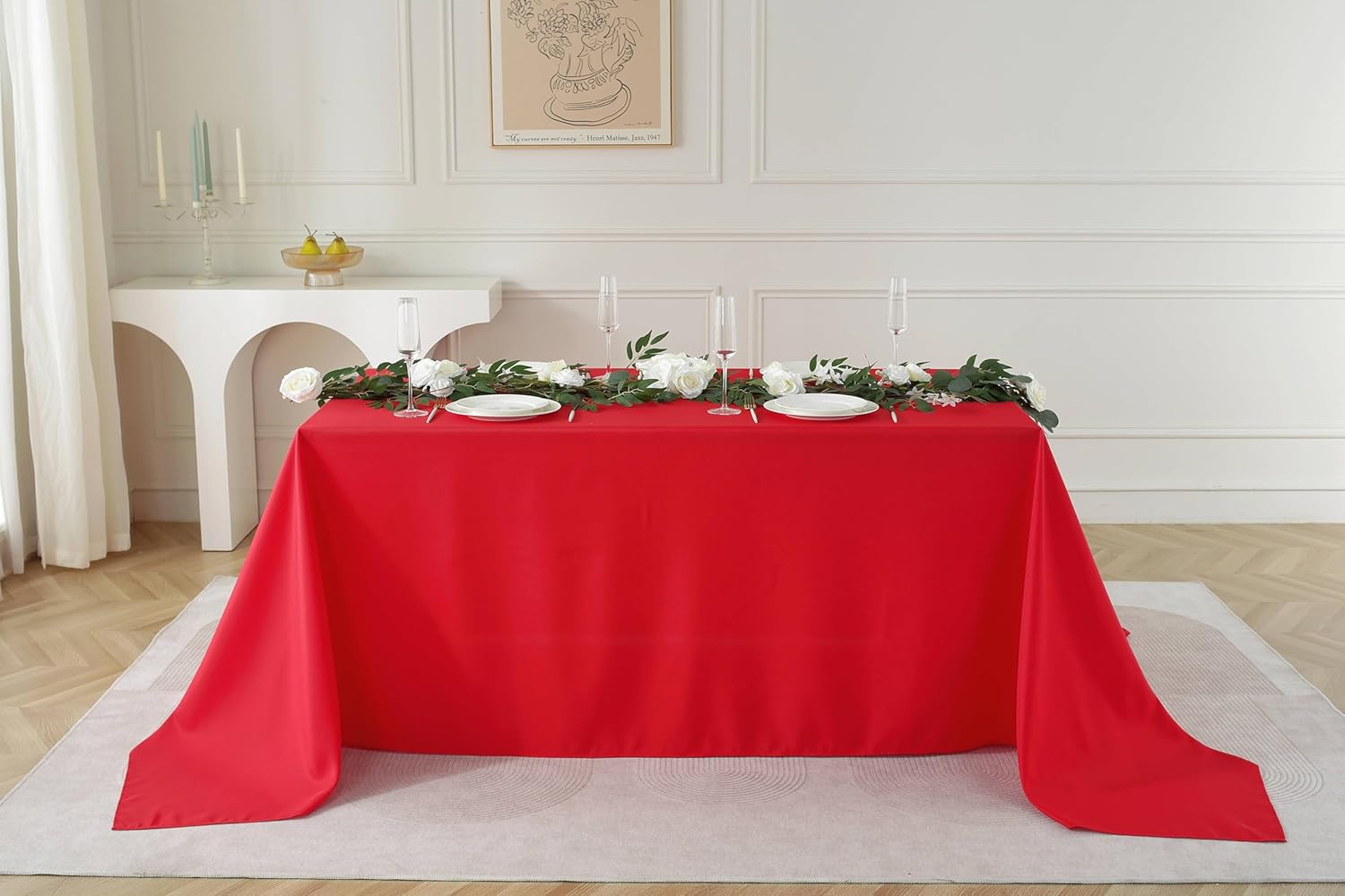 Craft And Party Red Rectangle Tablecloth, 90 x 156 Inch, Polyester Fabric Washable for Home, Party, Wedding or Restaurant Use