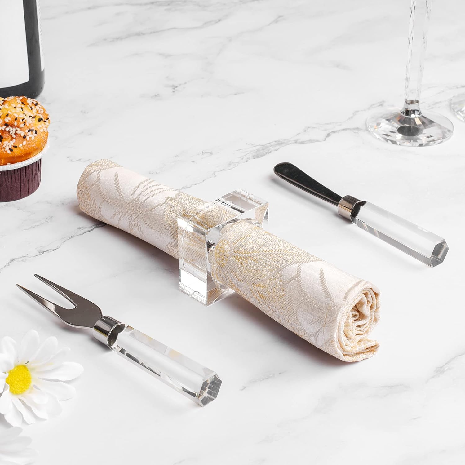 Crystal Napkin Holder Rings Square Design, Christmas Decorations for Dinner Clear 2" Set of 4