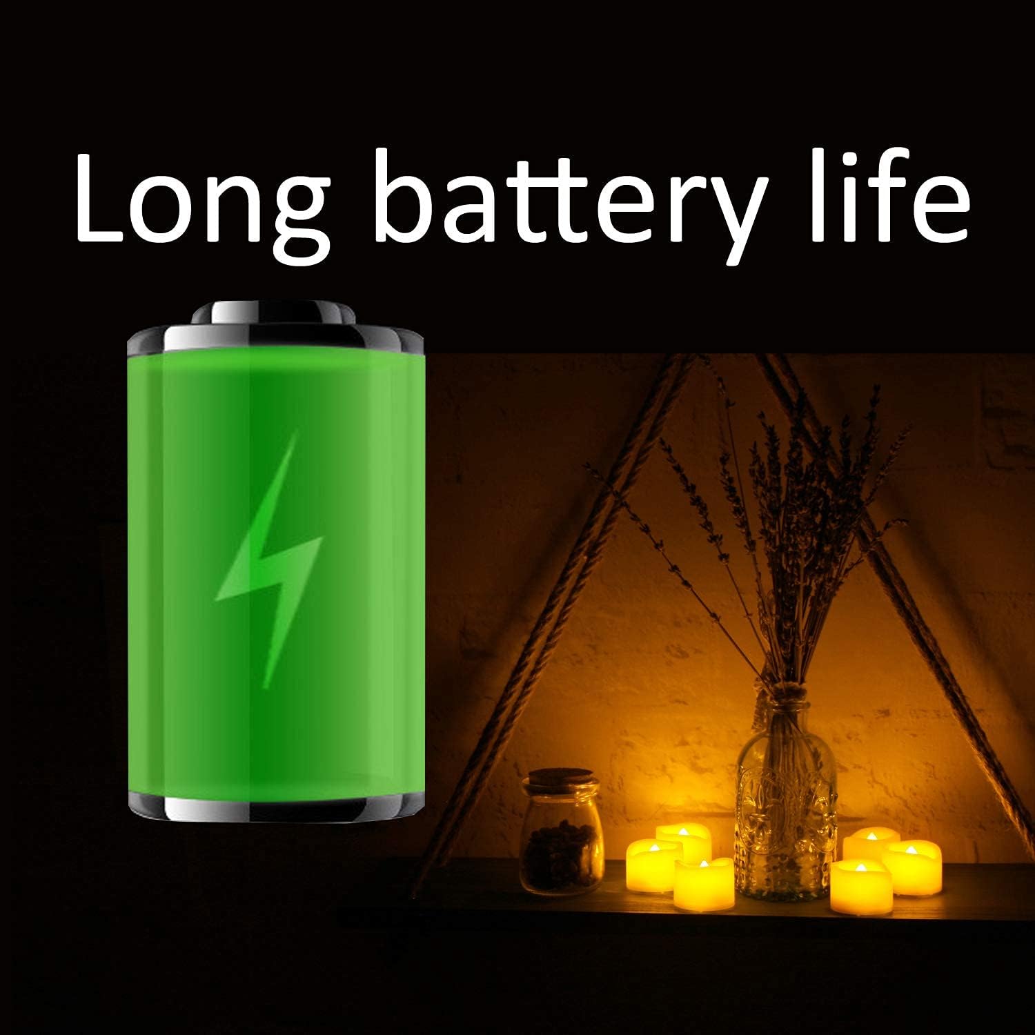 - Decorating your world. Flickering battery operated LED votive or tea lights with warm white lights create a warm, peace and romantic atmosphere. Decorative flameless votive and tealight candles are ideal for home, kitchen, table, garden, kitchen, yard, holiday, seasonal, event, festival, winter, party, wedding, New Yearโs Day, Valentine's Day, Easter, Mother's Day, Halloween, Christmas decorations. For example, use these flameless candles to light up your pumpkin or decorate your wedding party.