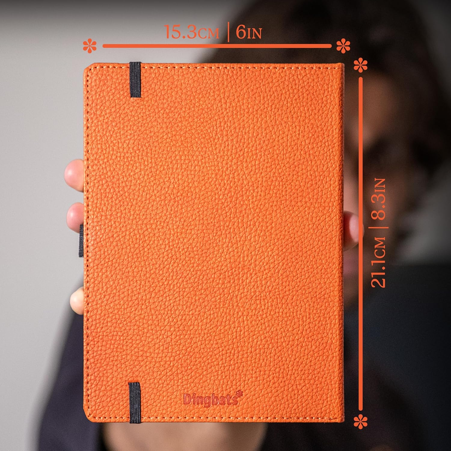 - A5 NOTEBOOK WITH LOTS O' FEATURES: Dingbats notebooks ooze quality - this hardcover bound leather notebook is crafted with PU vegan leather, micro-perforated cream 100gsm pages, an elastic closure and pen holder. It's complete with animal footprint end sheets, and an inner pocket for a little added detail - the perfect gifts for men and women, these travel essentials are a gift that keep on giving