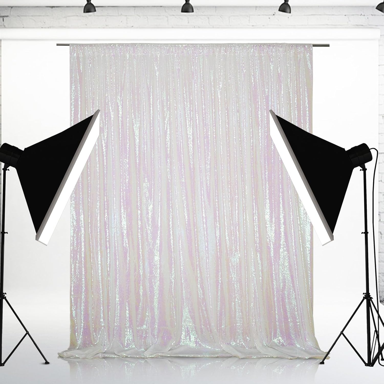 Eternal Beauty White Iridescent Sequin Backdrop, 8x8 Ft Glitter Background Curtains for Shimmer Photography Party Wedding Birthday Back Drop Decor