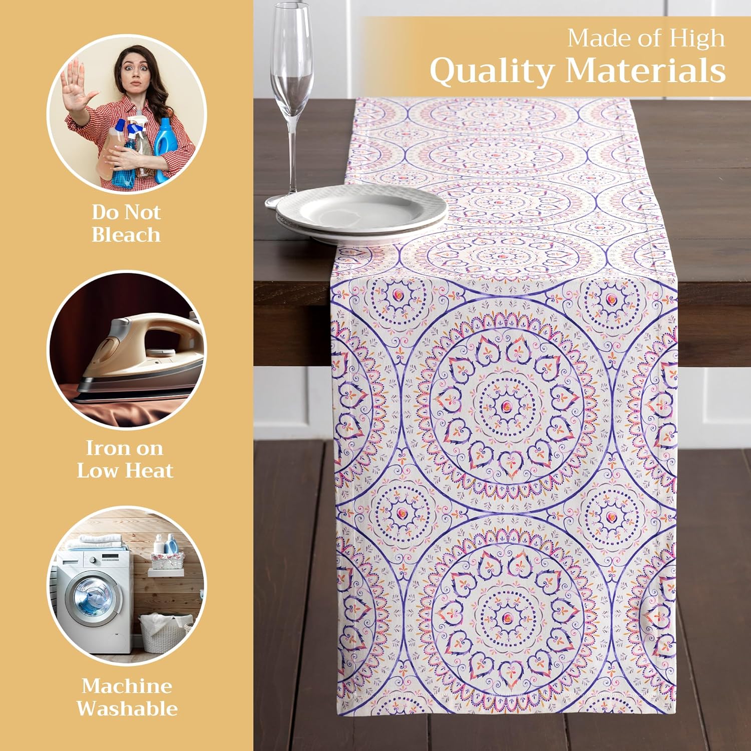 Maison d' Hermine Table Runner 100% Cotton Double Layer Table Runners 72 inches Long Decorative for Home Kitchen Dining Party Baby Shower Wedding Bridal Shower Spring Summer (Mandala, 14.50" x 72")