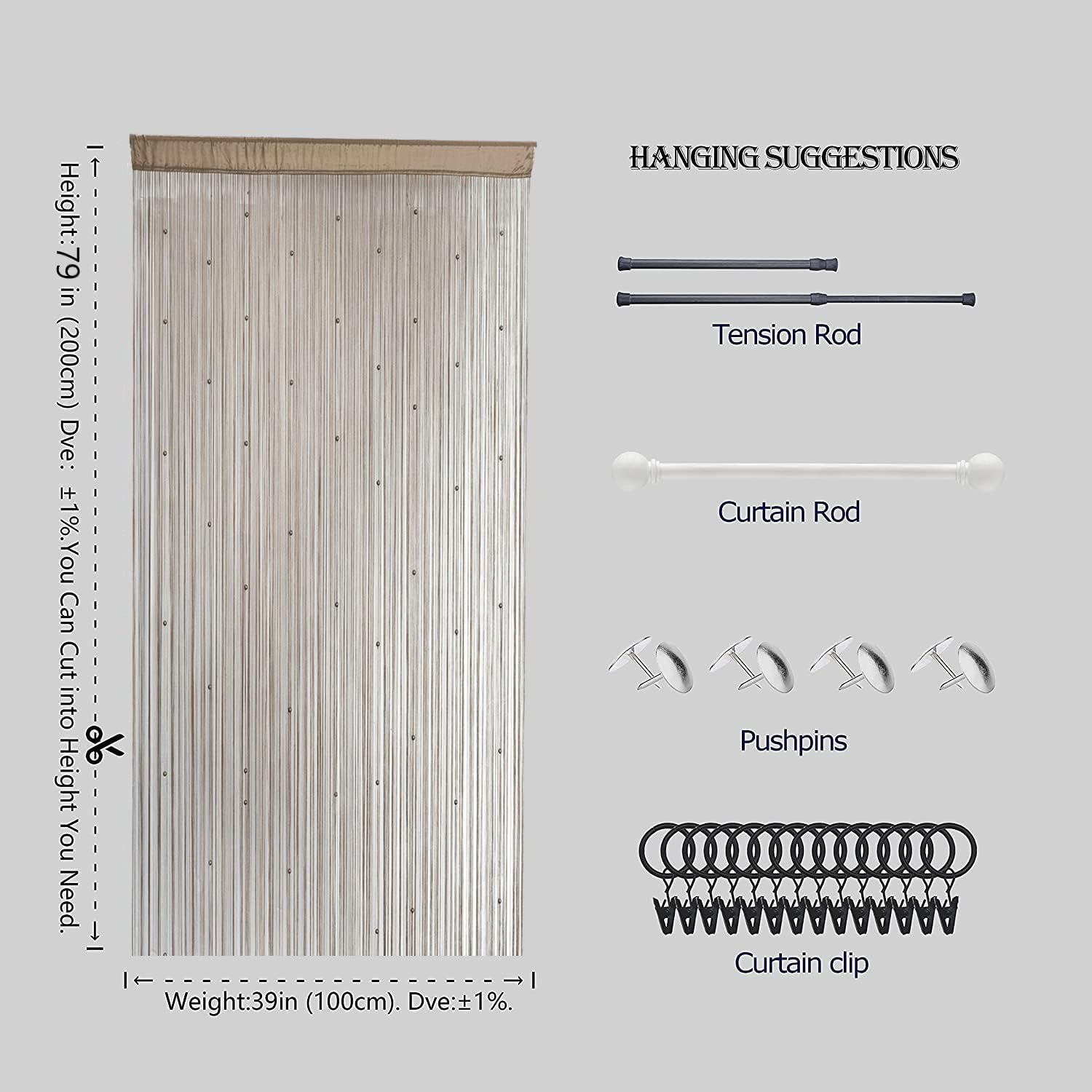 - The door curtains hang beautifully and let light in,meanwhile keep privacy,look pretty and delicate.If you need the strings to be dense,we suggest buy 2 or more.