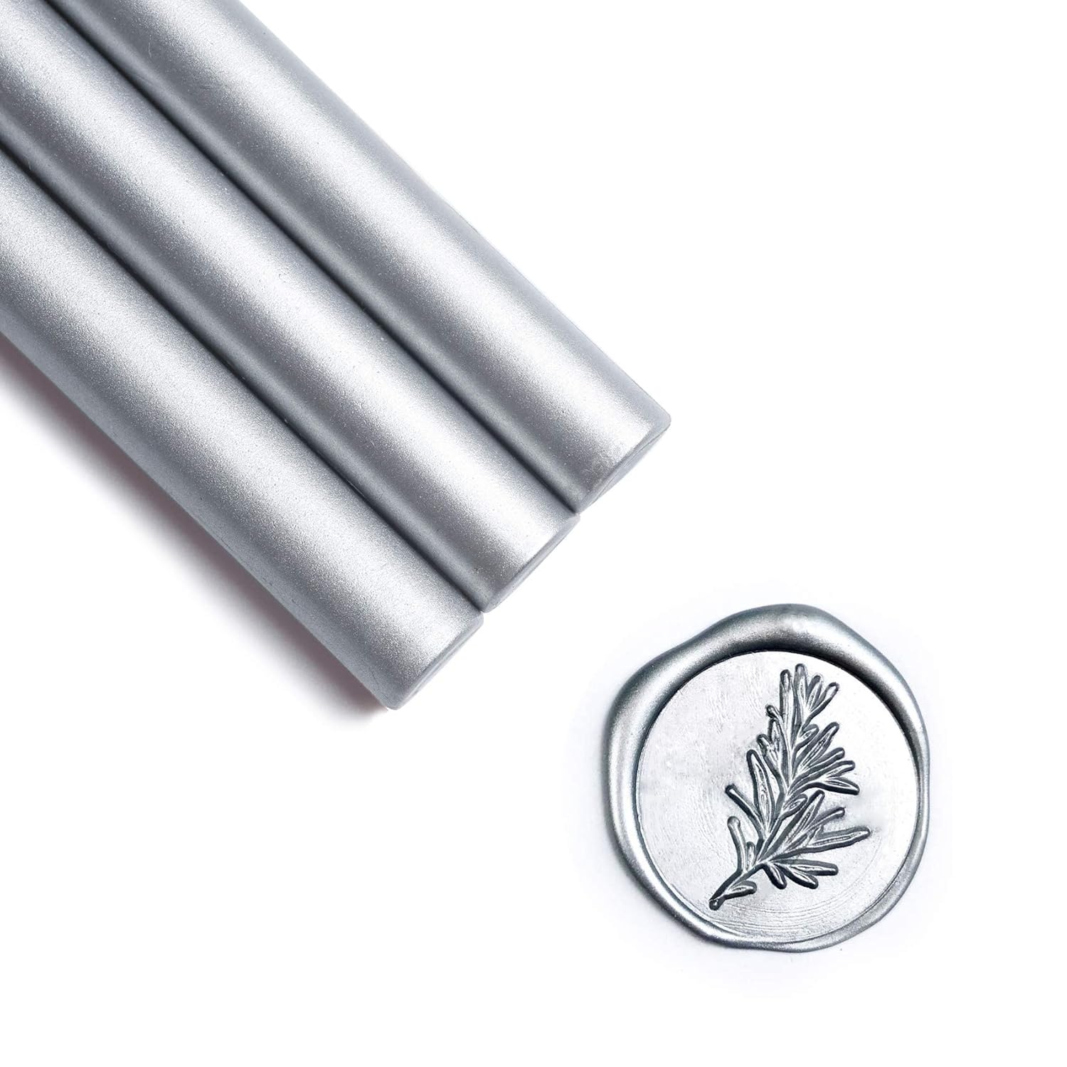 UNIQOOO Mailable Glue Gun Sealing Wax Sticks for Wax Seal Stamp - Metallic Silver, Great for Christmas Cards, Wedding Invitations, Cards Envelopes, Snail Mails, Wine Packages, Gift Ideas, Pack of 8