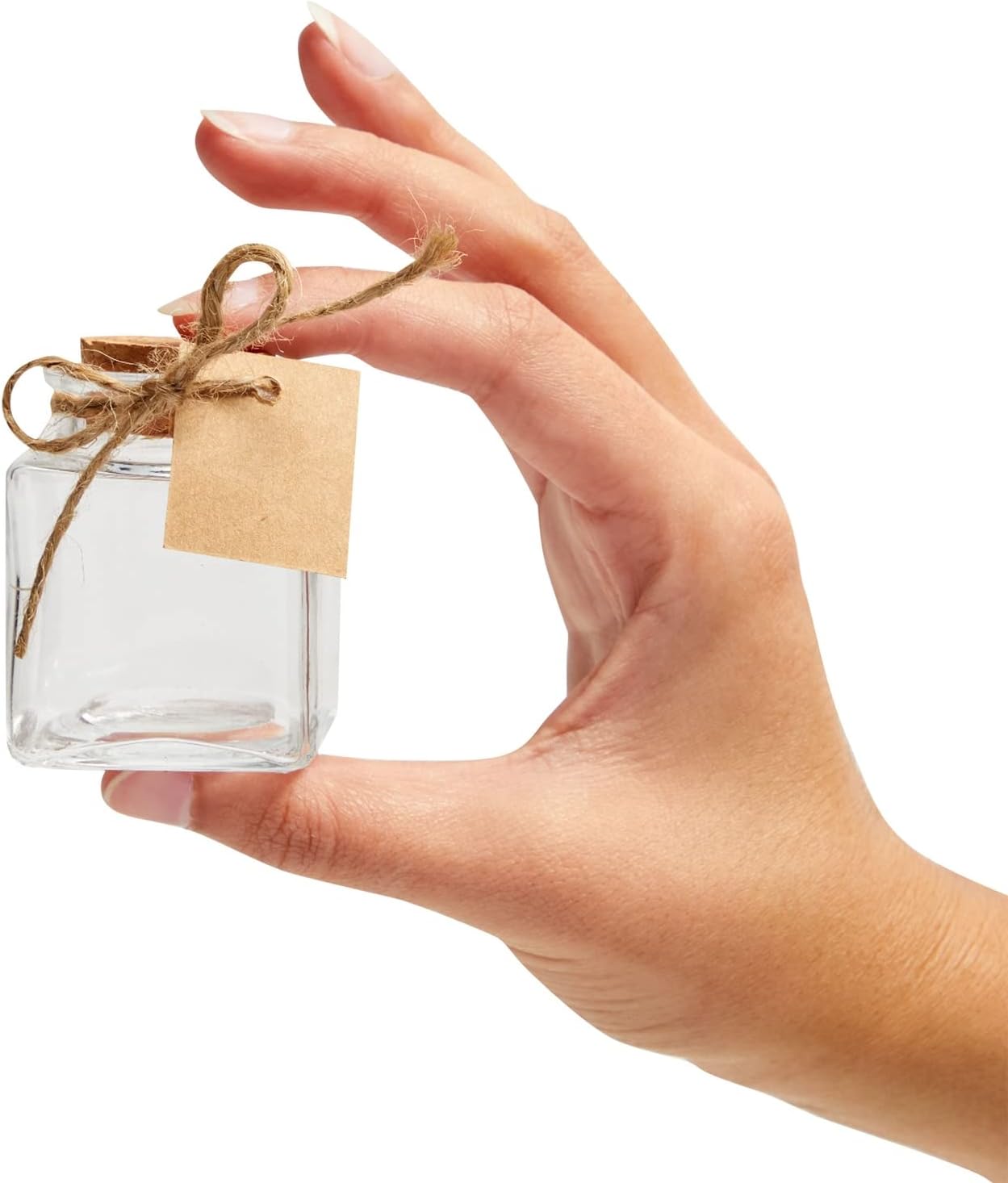 BLUE PANDA 15 Pack Small Glass Bottles with Cork Stoppers - Mini Jars with Cork Lids, Twine, and Blank Tags for Crafting & Spices - Small Bottles 1.7 Oz (50ml)