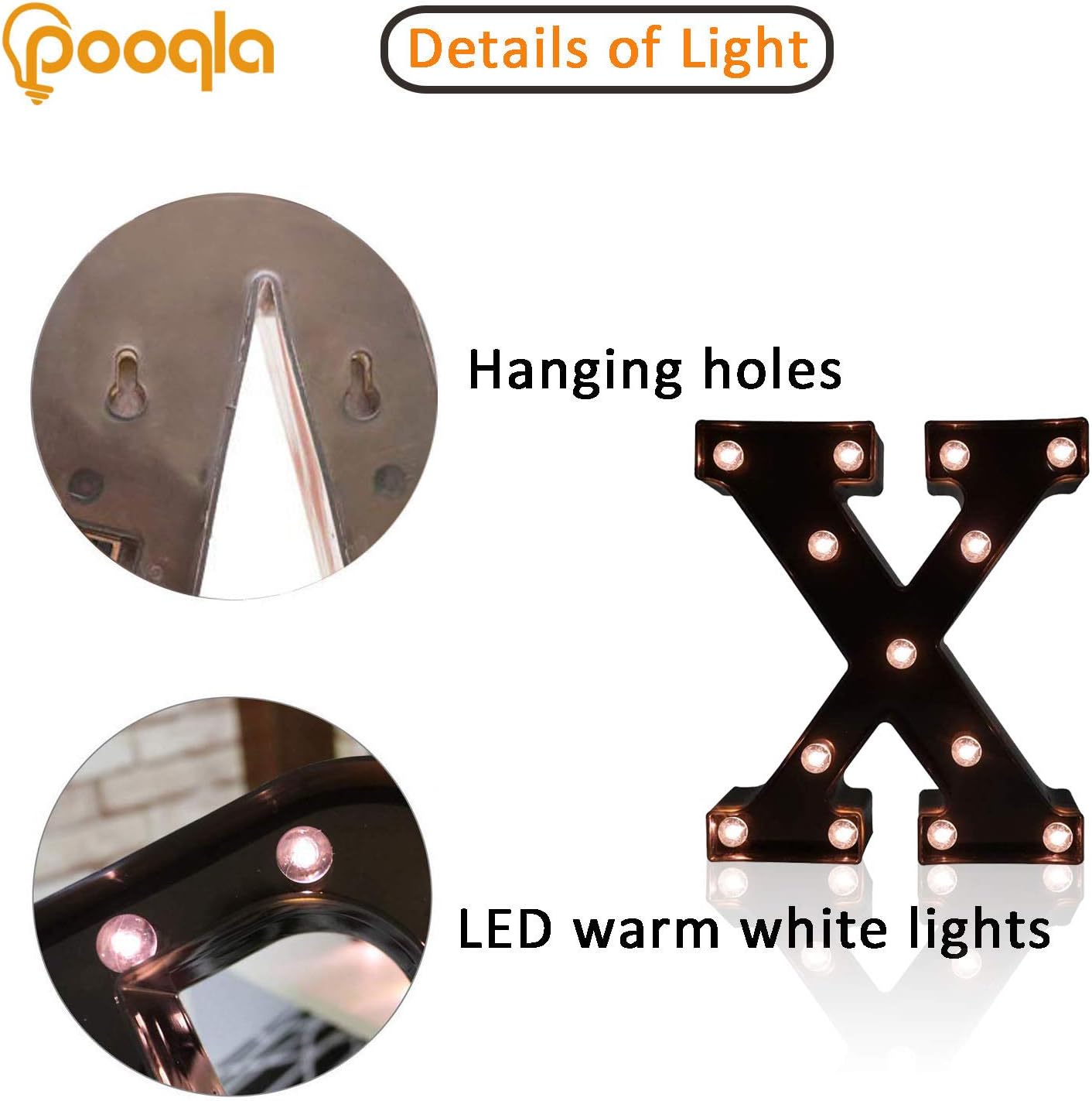 Decorative LED Illuminated Letter Marquee Sign - Alphabet Marquee Letters with Lights For Wedding Birthday Party Christmas Night Light Lamp Home Bar Decoration X, Black