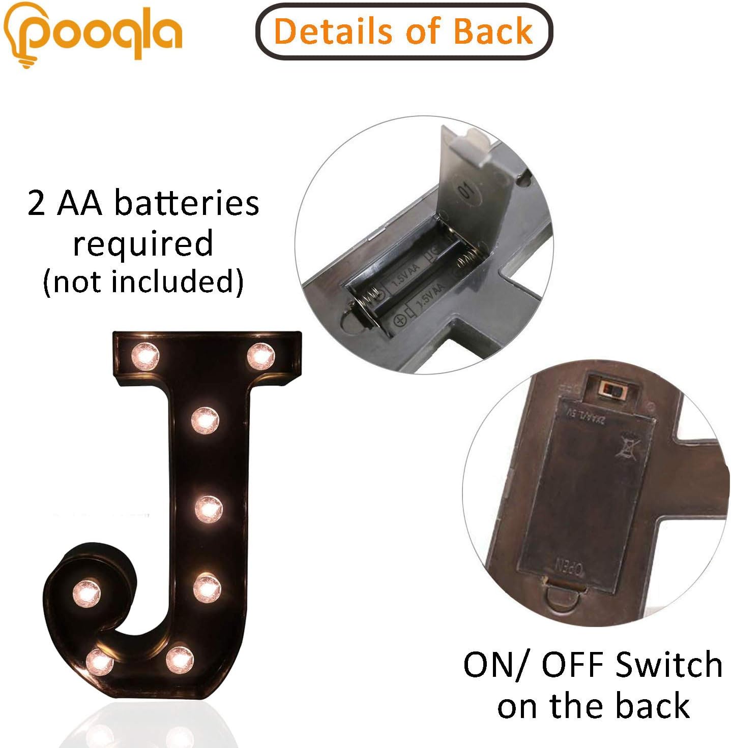 Decorative LED Illuminated Letter Marquee Sign - Alphabet Marquee Letters with Lights For Wedding Birthday Party Christmas Night Light Lamp Home Bar Decoration J, Black