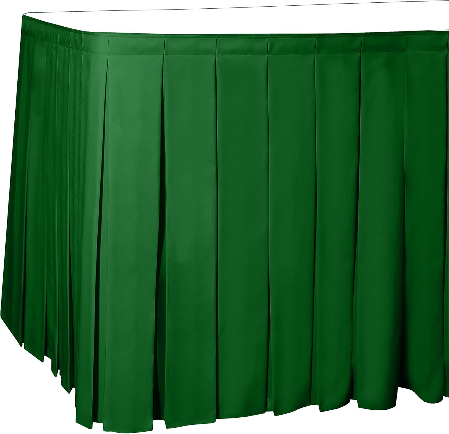 Ultimate Textile Pleat Polyester Fabric Table Skirt - Machine Washable Flame Resistant with Clips for Events, Weddings & Trade Shows, Cut & Sewn in Paterson, NJ - Emerald, 14' Box Pleat