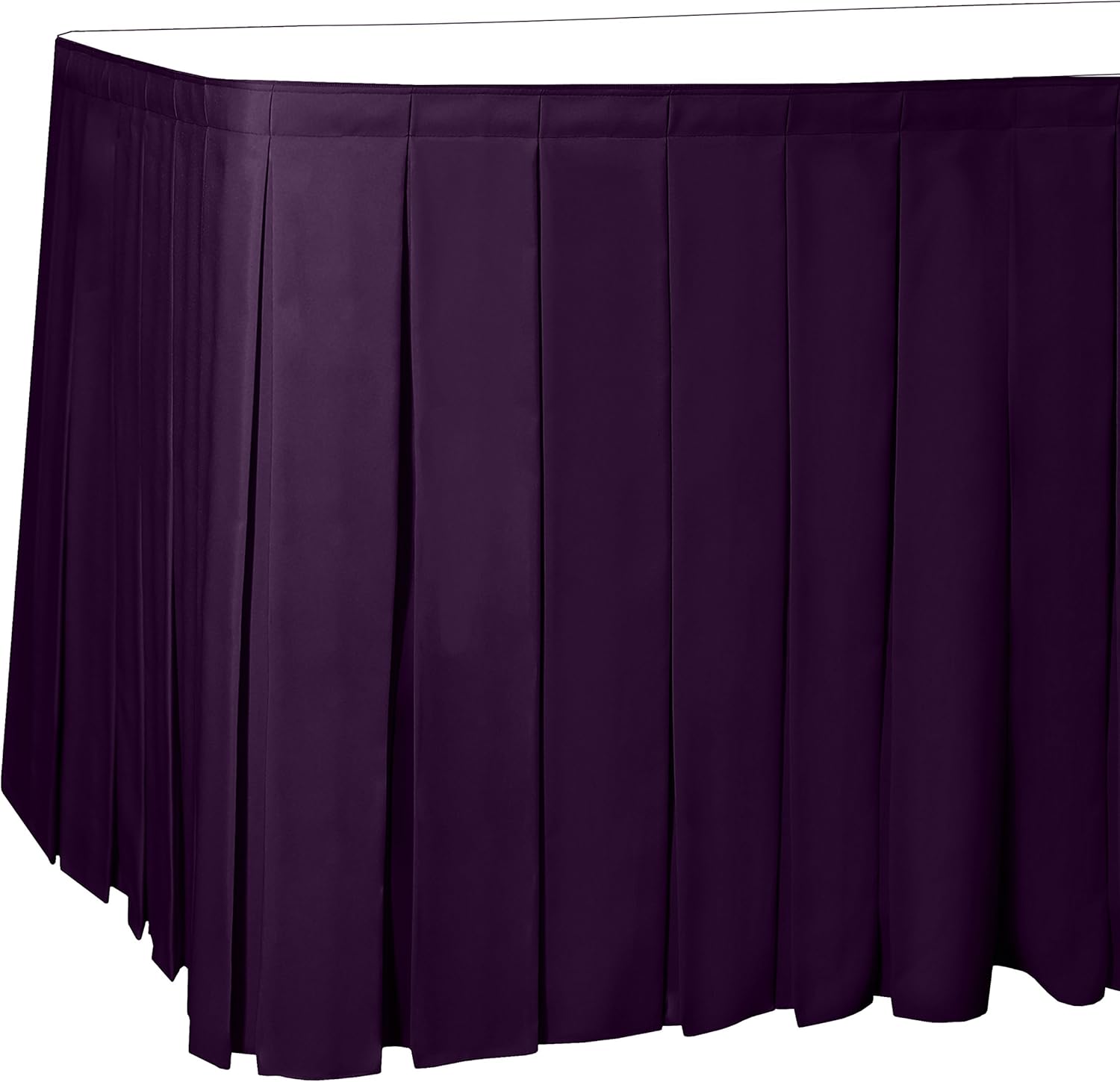 Ultimate Textile Pleat Polyester Fabric Table Skirt - Machine Washable Flame Resistant with Clips for Events, Weddings & Trade Shows, Cut & Sewn in Paterson, NJ - Aubergine, 17' Box Pleat
