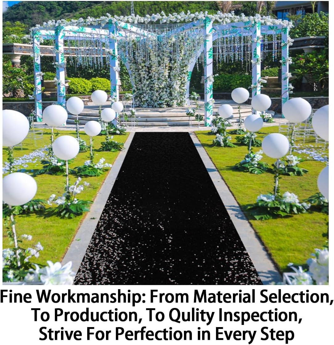ShinyBeauty Aisle Runner Outdoor Wedding Aisle Runner for Wedding Sequin Aisle Runner Sequin Fabric Wedding Floor Runner Glitter Carpert Runner (4FTx30FT, Black)