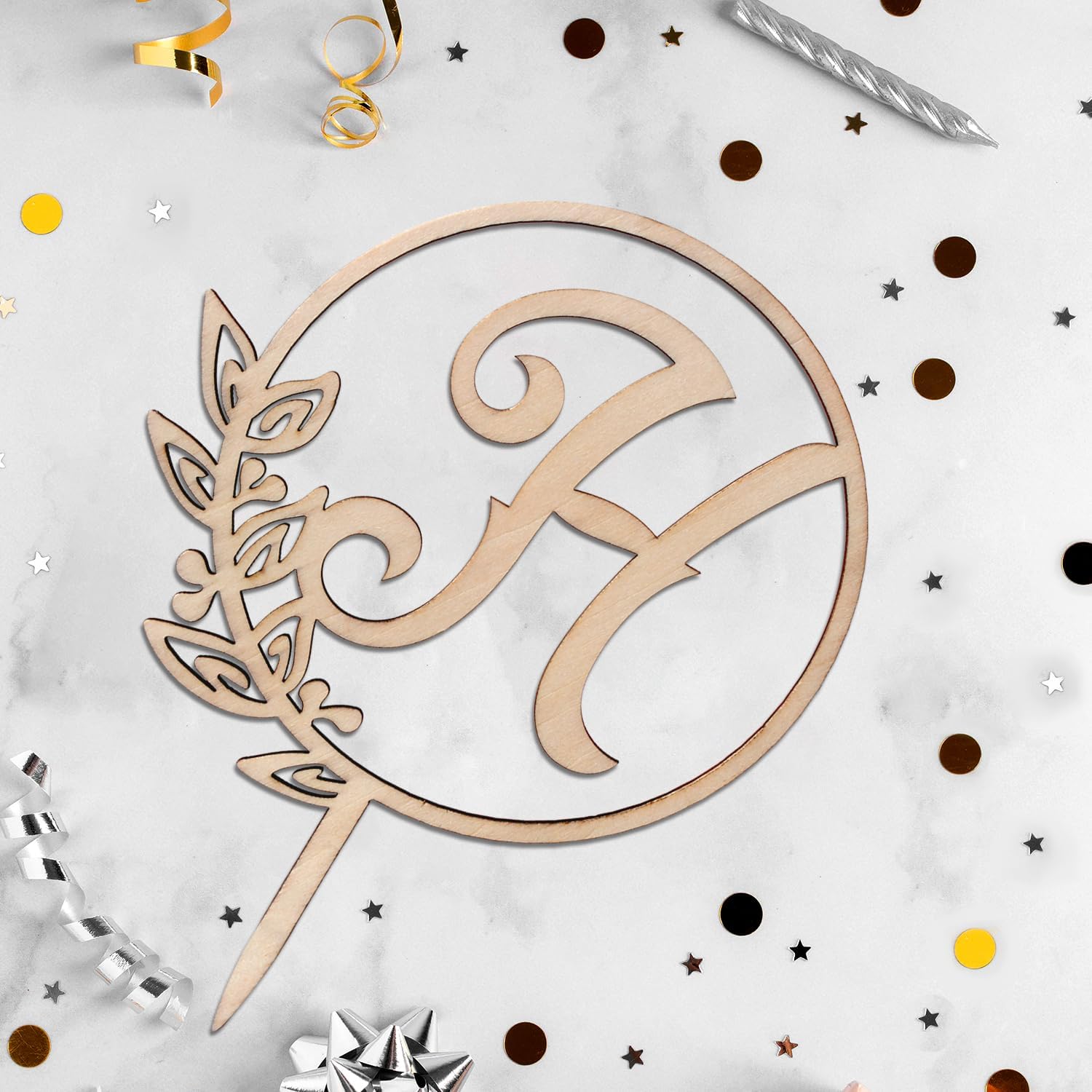 LINGTEER Personalized Inital Letter H Wooden Cake Topper Perfect for Birthday Rustic Wedding Anniversary Party Keepsake Decoration