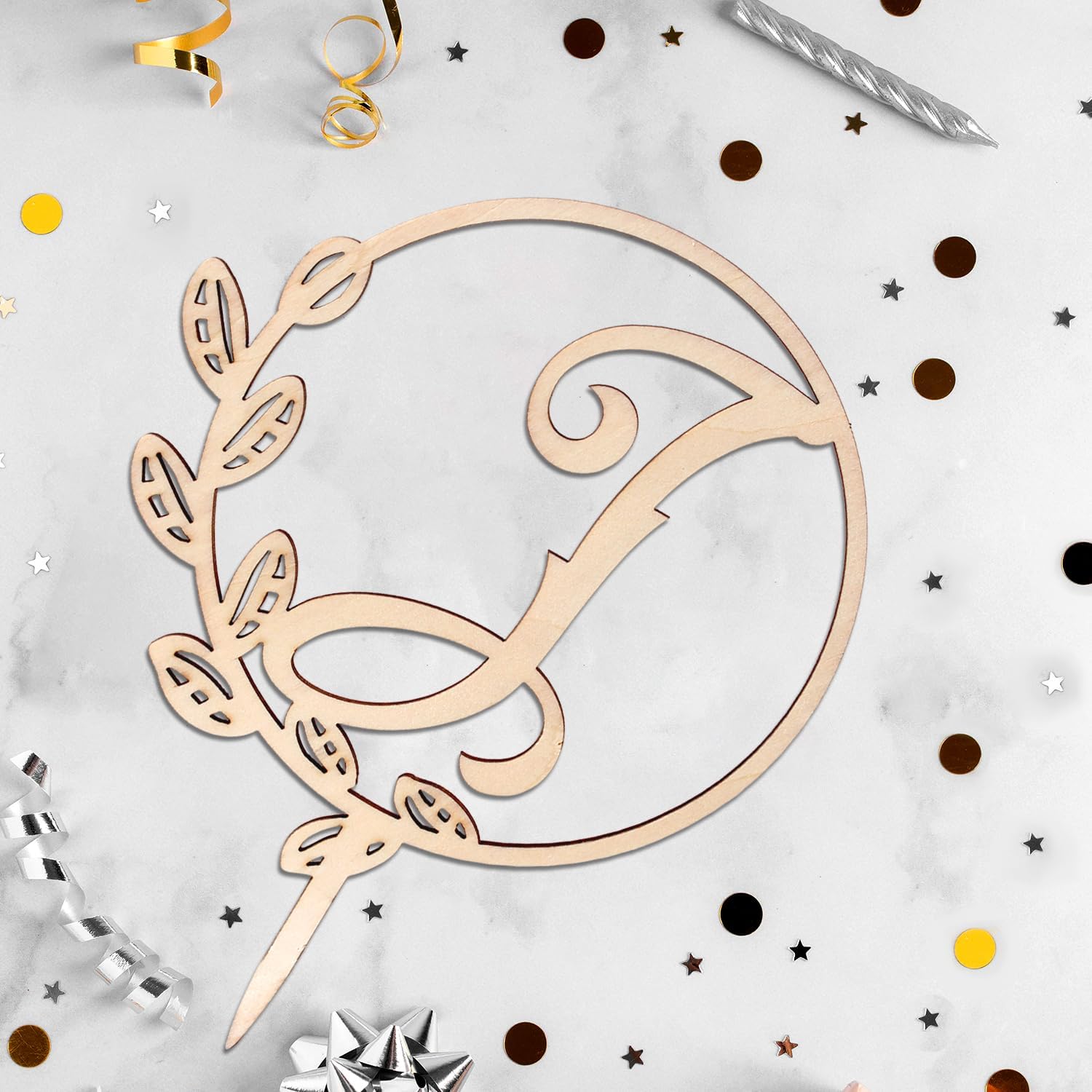 LINGTEER Personalized Inital Letter I Wooden Cake Topper Perfect for Birthday Rustic Wedding Anniversary Party Keepsake Decoration