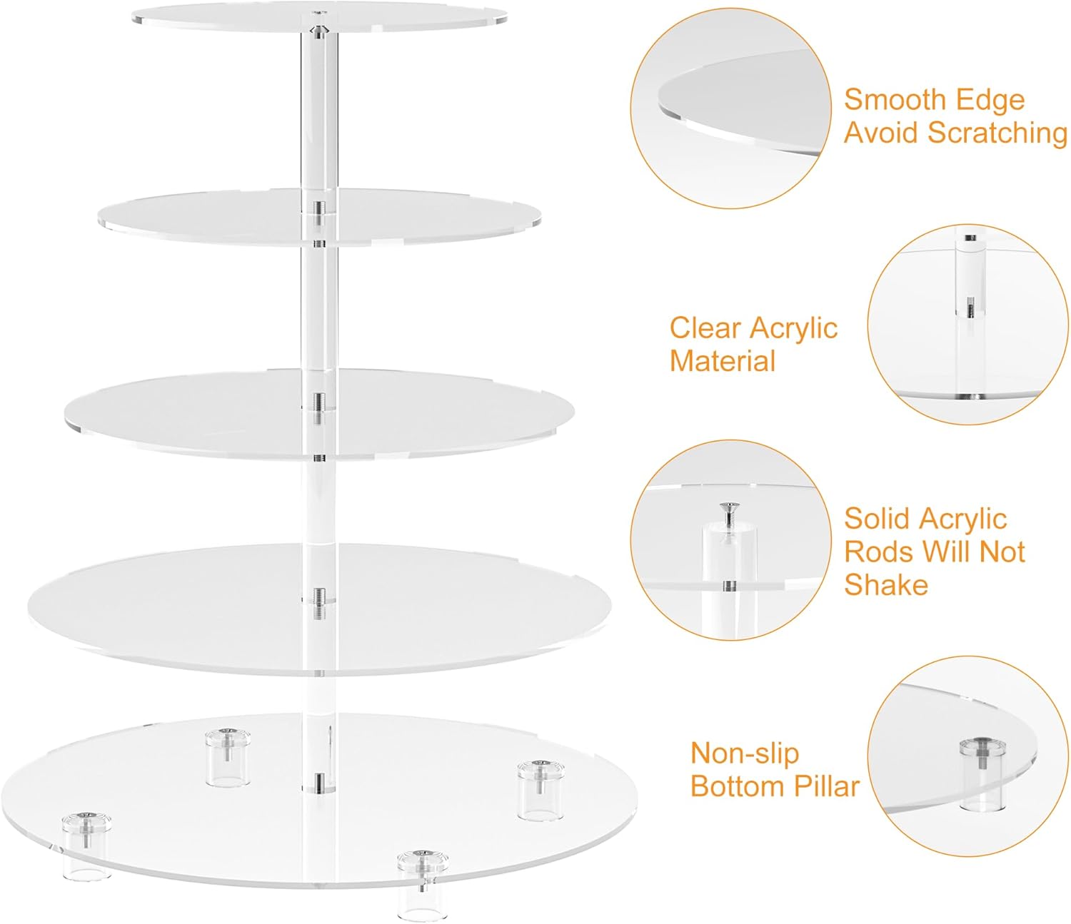 Cupcake Stand for 50 Cupcakes, 5 Tier Cupcake Holder, Clear Round Cupcake Tower, Acrylic Cupcake Stand, Cupcake Display Stand for Party, Wedding, Birthday, Baby Shower, Halloween