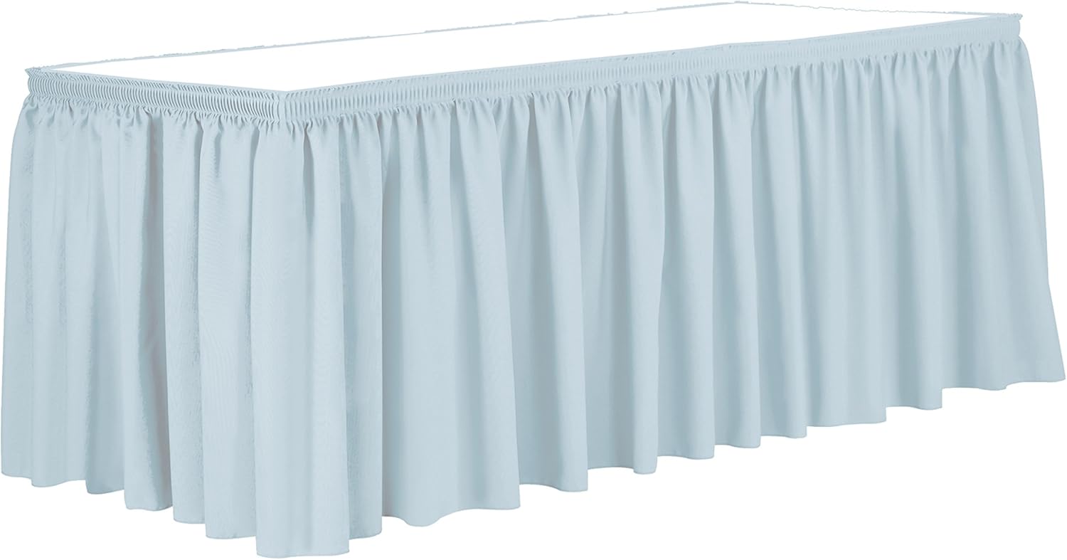 Ultimate Textile Pleat Polyester Fabric Table Skirt - Machine Washable Flame Resistant with Clips for Events, Weddings & Trade Shows, Cut & Sewn in Paterson, NJ - Ice Blue, 17' Shirred Pleat
