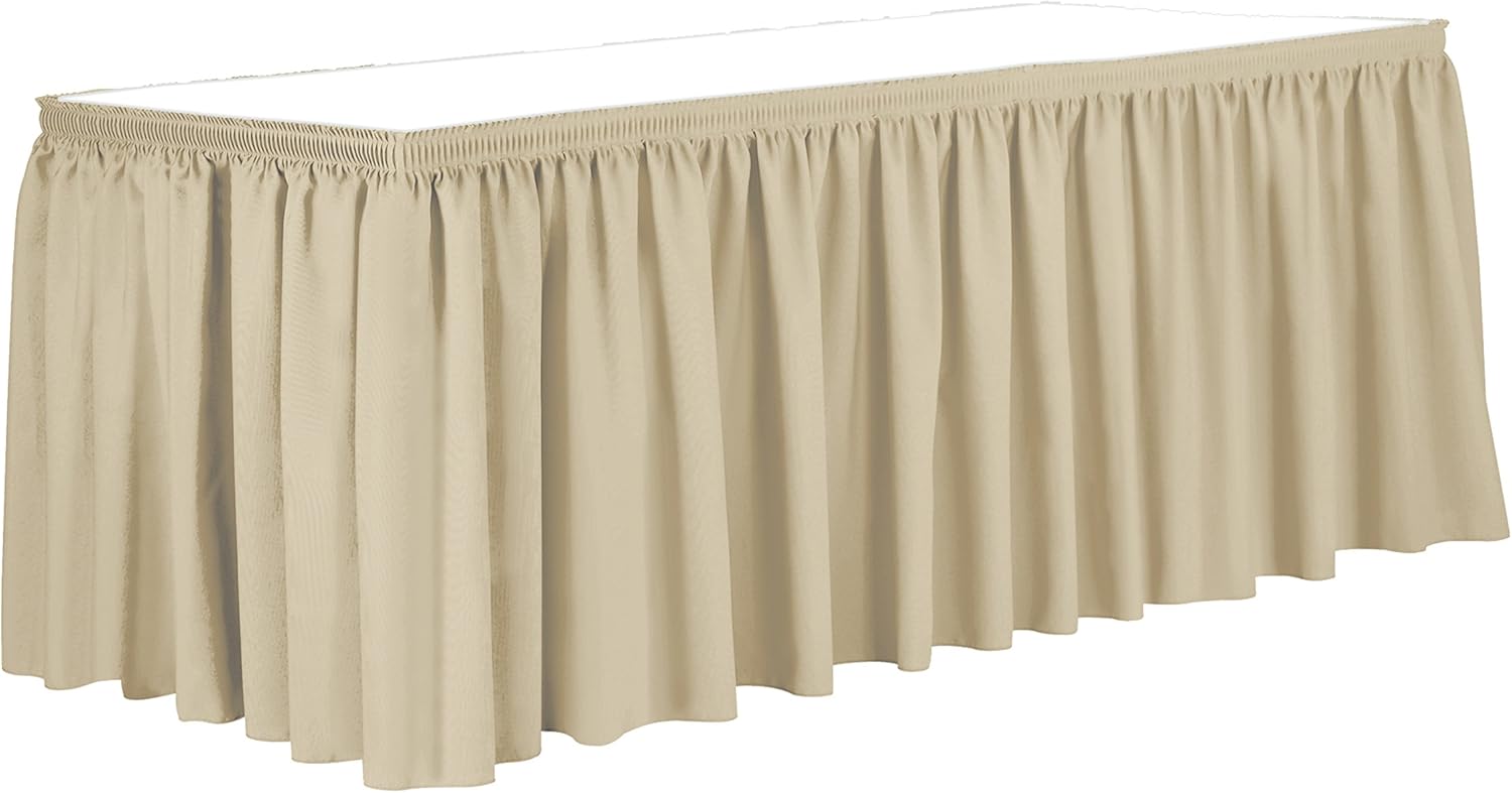 Ultimate Textile Pleat Polyester Fabric Table Skirt - Machine Washable Flame Resistant with Clips for Events, Weddings & Trade Shows, Cut & Sewn in Paterson, NJ - Tan, 7' Shirred Pleat
