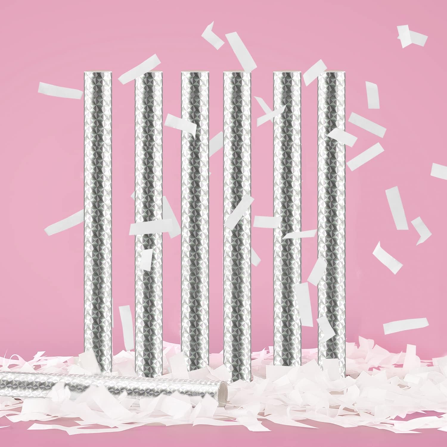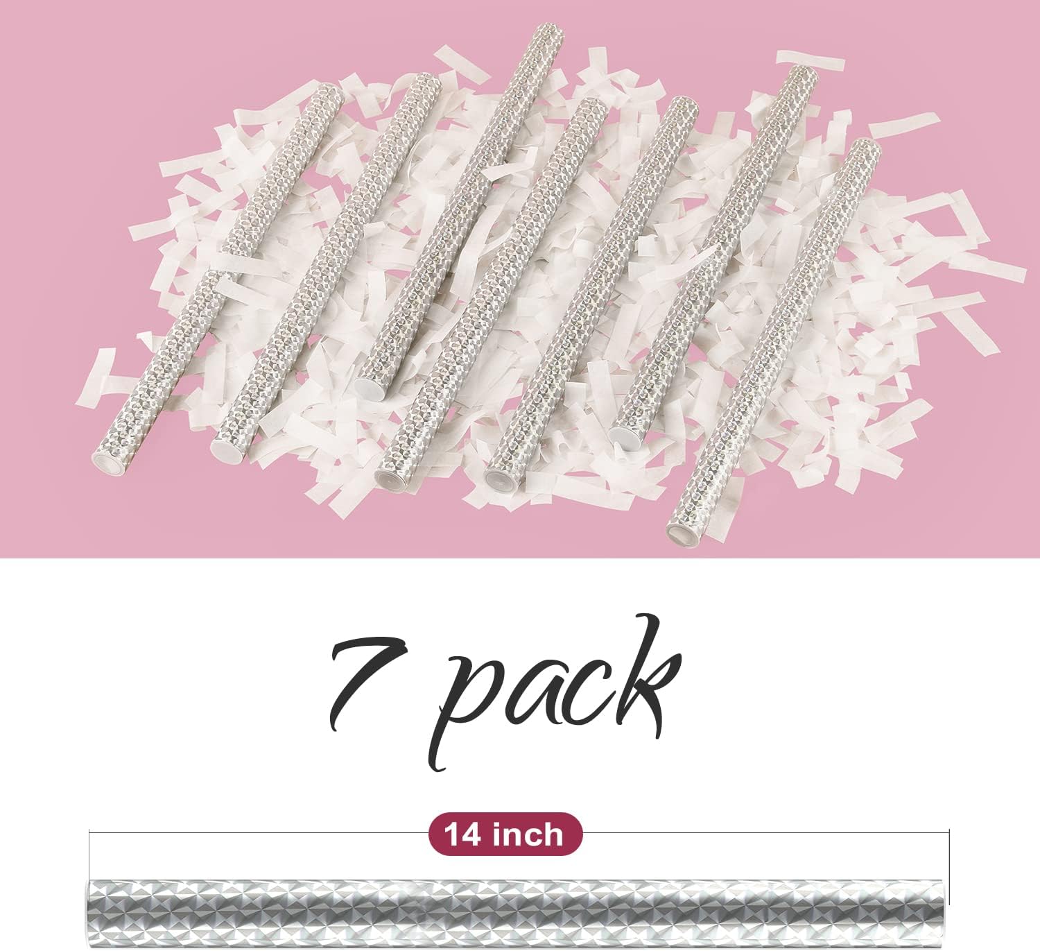 - Quantity & Size : There are 10 packs in total, the length of each confetti tube is 14 inches, and each one loaded with 26grams white confetti