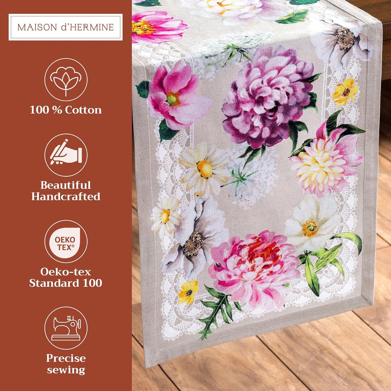 - Many more to shop for: Complete the look with matching kitchen and table linens. Visit the Maison d’ Hermine store for aprons, kitchen towel, placemats, napkins, tablecloth, and more in this exquisite collection.