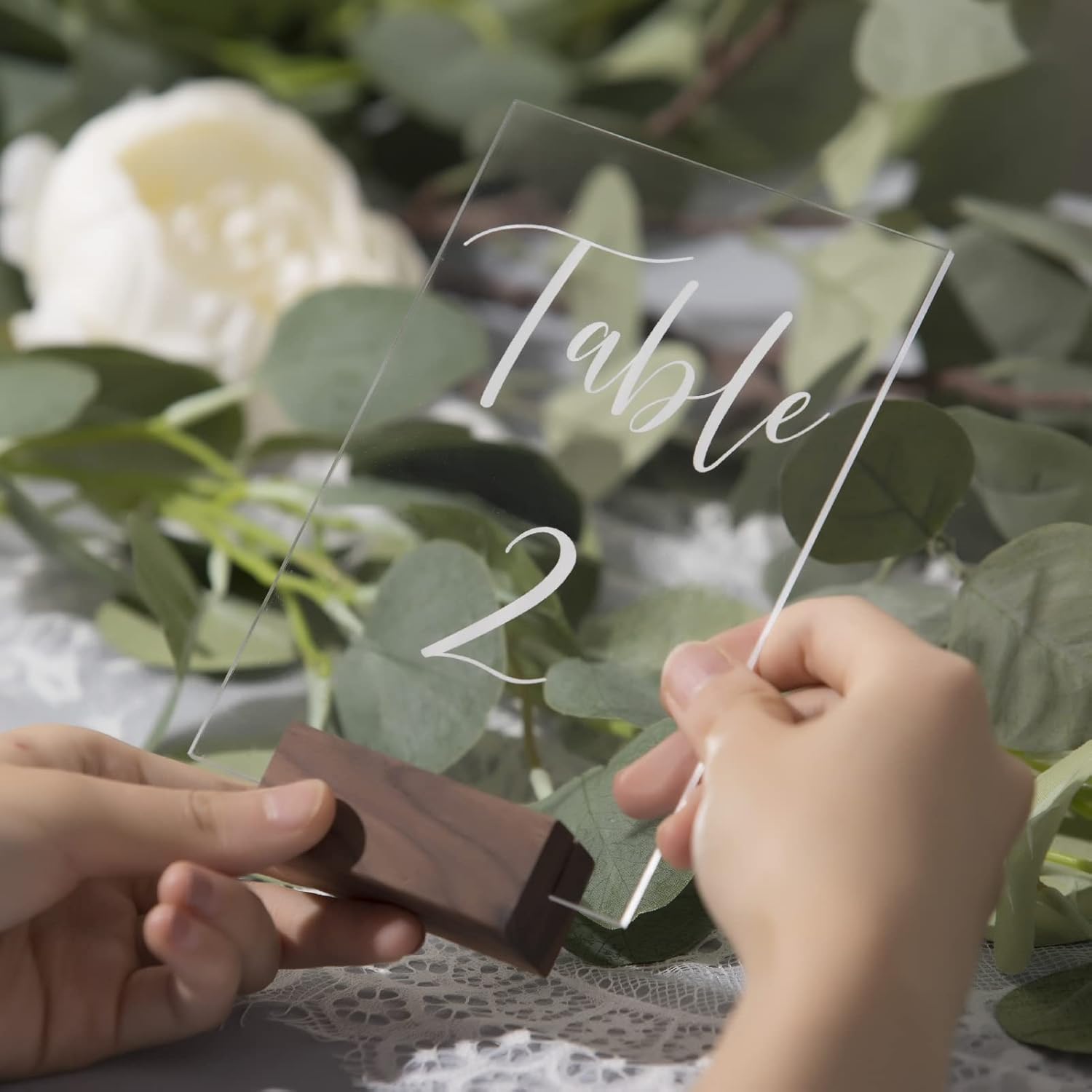 - Package Includes - A set of 20 wood table sign holders; Dimensions: 2 3/8 x 1 1/8 x 1inch Lx Wx D. Please note that all place cards and acrylic signs shown in the pictures are NOT included.