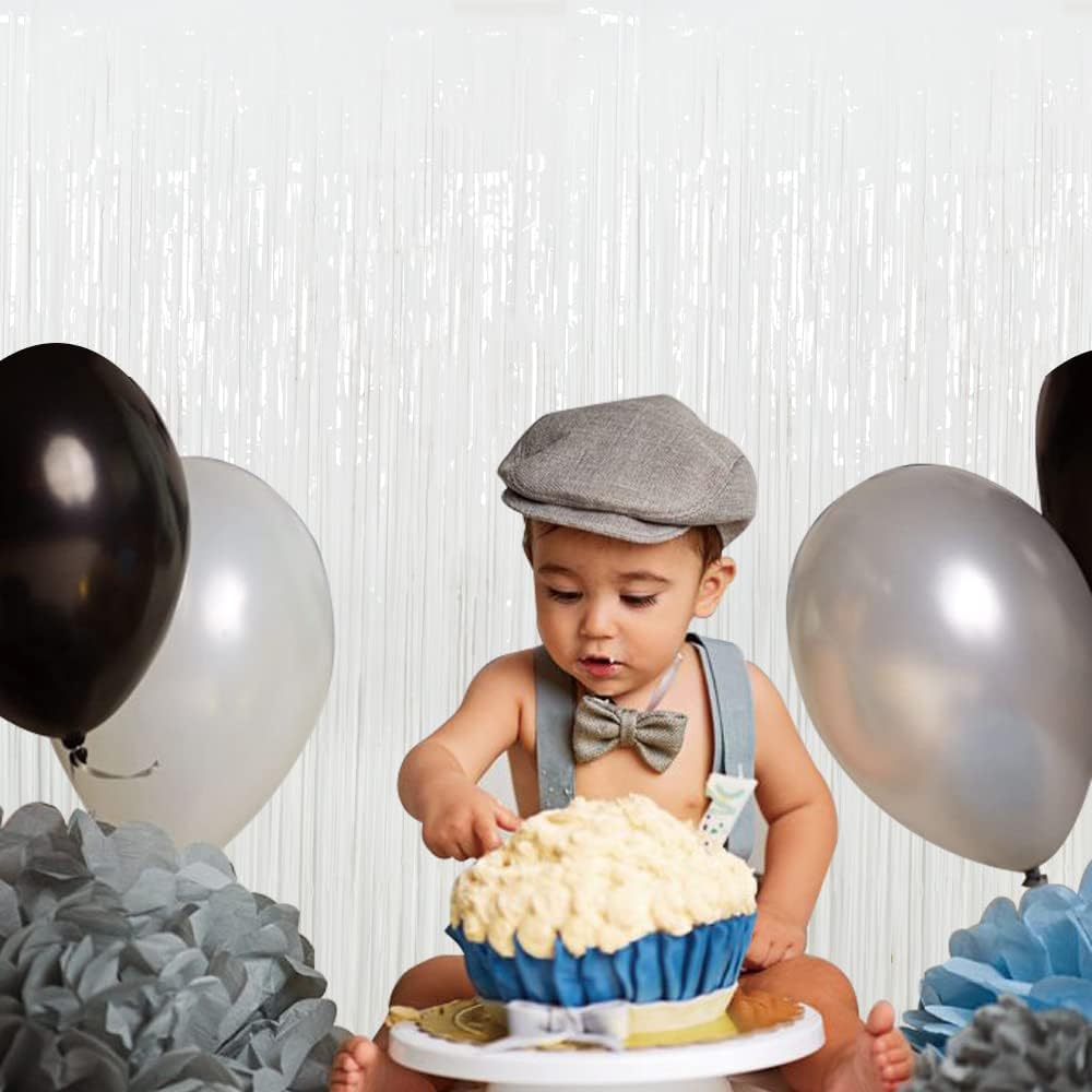 3Pcs White Metallic Tinsel Foil Fringe Curtains, 3.28ft x 6.56ft White Photo Booth Backdrop Streamer Curtain,Photo Booth Props, Bachelorette Party Supplies, Birthday, Christmas,New Year Decorations