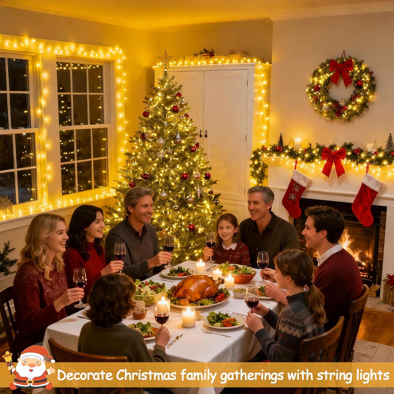 - Widely Use & Christmas Decoration Use: The warm white indoor led Christmas string lights are versatile, suitable for bedroom, house, patio, wall, garden, yard, lawn, porch, fireplace, etc. The outdoor Christmas lights use ultra-high-intensity LEDs to create soft and bright lighting, setting the perfect festive atmosphere for Christmas, birthday parties, family dinners, or weddings, both indoors and outdoors. Watch as your backyard transforms into a whimsical wonderland during the Christmas season!