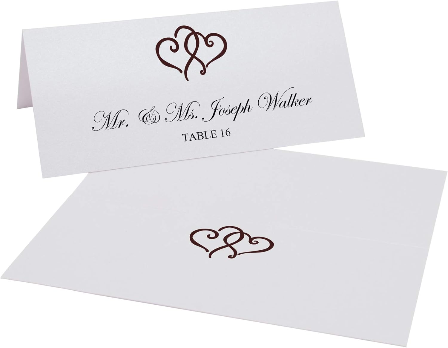 Linked Hearts Place Cards, Chocolate (Choose Color), Set of 150, Pre-cut and Scored - Wedding, Party, Dinner, and Special Events - Made in the USA
