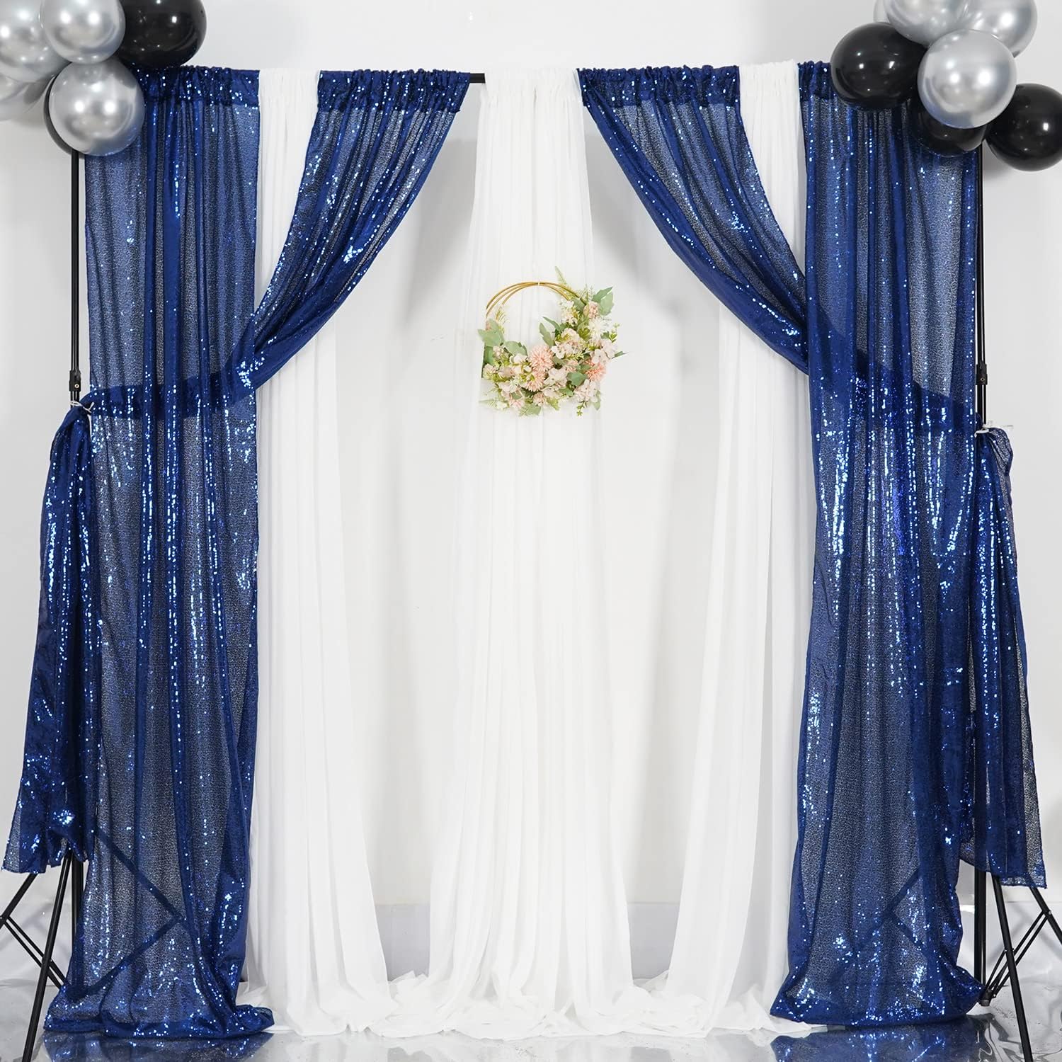 Poise3EHome 2ft x 8ft Blue Sequin Photography Backdrop Curtains 2 Panels for Party Decoration, Navy Blue