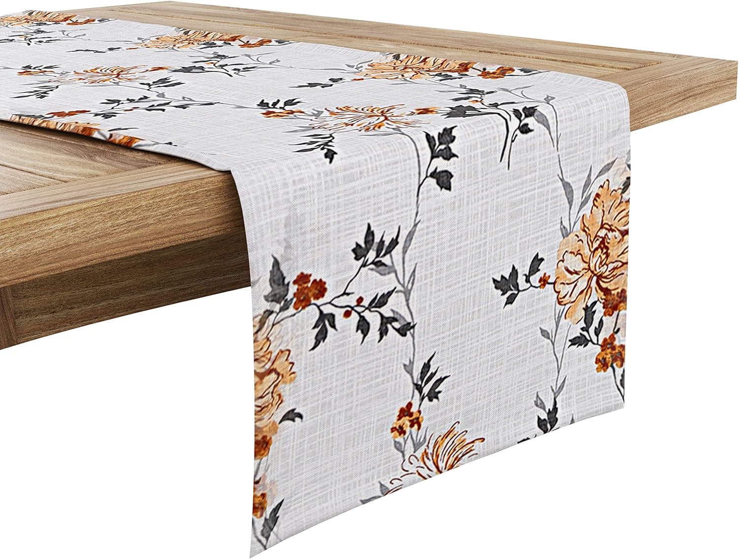 Ruvanti 100% Cotton Table Runner 72 Inches Long, Non-Slip, Stain Resistant, Washable & Reusable Table Runners Perfect for Wedding, Parties, Christmas, Holiday, in-Door use - Grey Floral