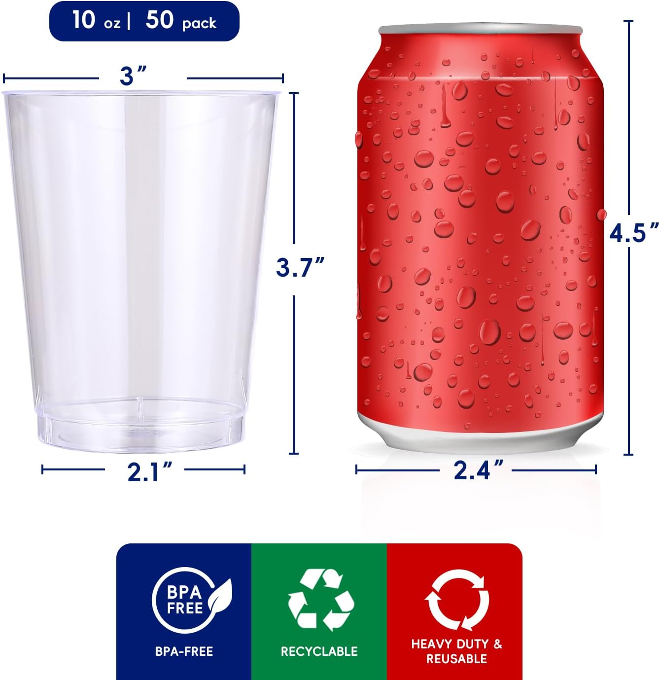 JOLLY CHEF 10 oz Clear Disposable Plastic Cups 50 Pack, Clear Plastic Cups Tumblers, Heavy duty Party Glasses, Disposable Cups for Wedding, Thanksgiving,Halloween,Christmas Party