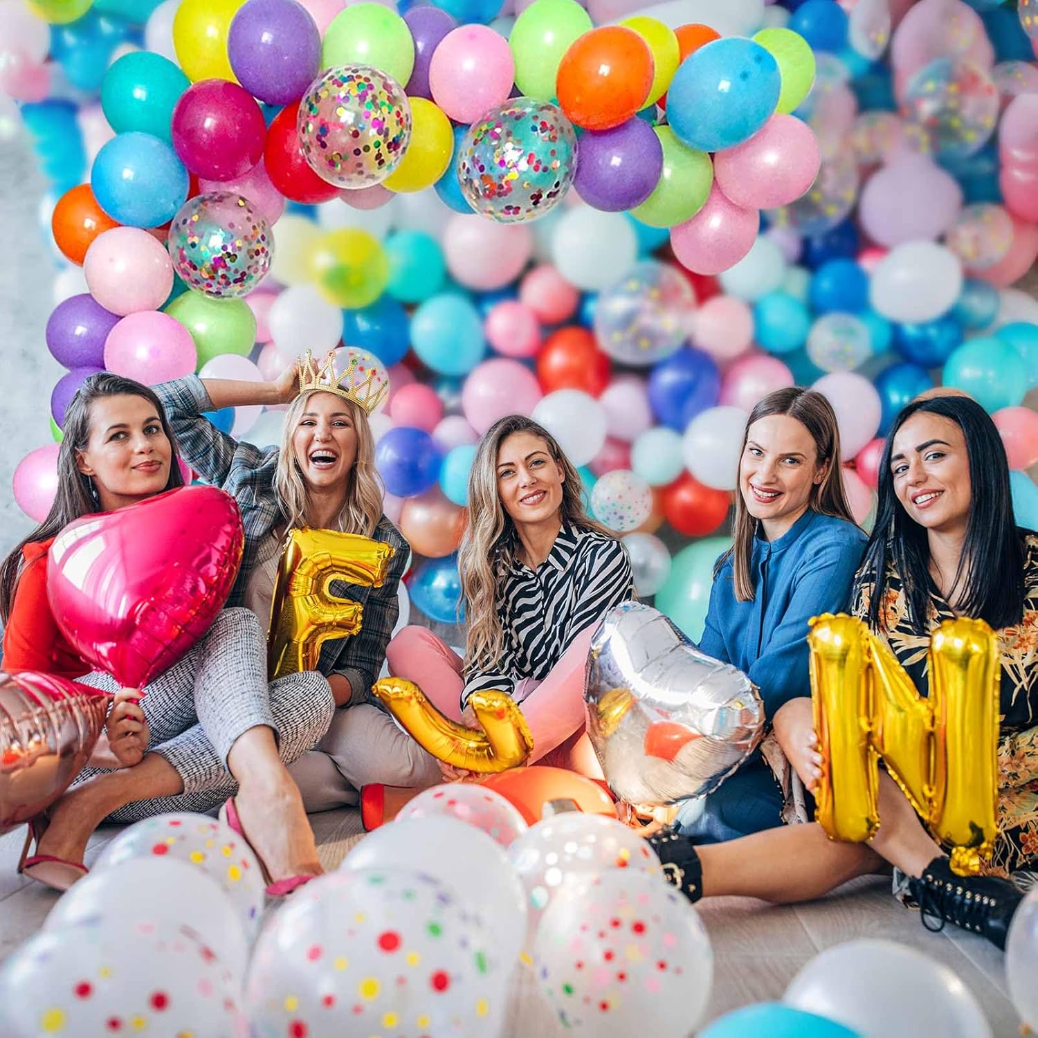 - Package Include - Latex Balloon Package (100pcs 10inch Latex balloons + 10 Gold Confetti Balloons + 1 roll of 16feet arch balloon strip tape + 1 balloon tying tools + 1 roll of 100 glue dots. ).