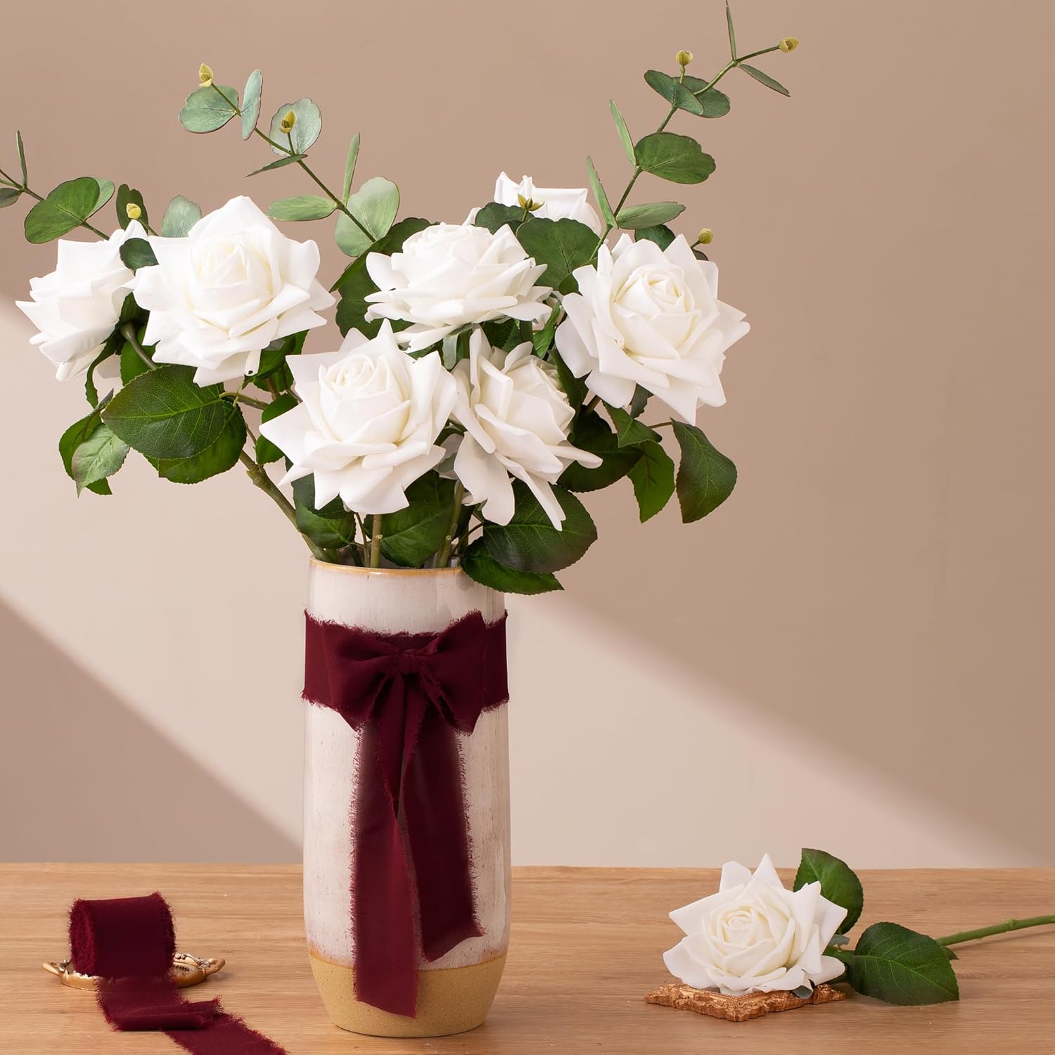 - 【Size and Color】Each roll of chiffon ribbon is 2 inches wide and 7 yards long, perfect for various creative uses such as making bows, decorating wreaths, and DIY crafts. This set includes 3 rolls burgundy ribbons. These vibrant frayed ribbons add a rustic charm to your creations, ideal for bouquet wrap or gift ribbon.