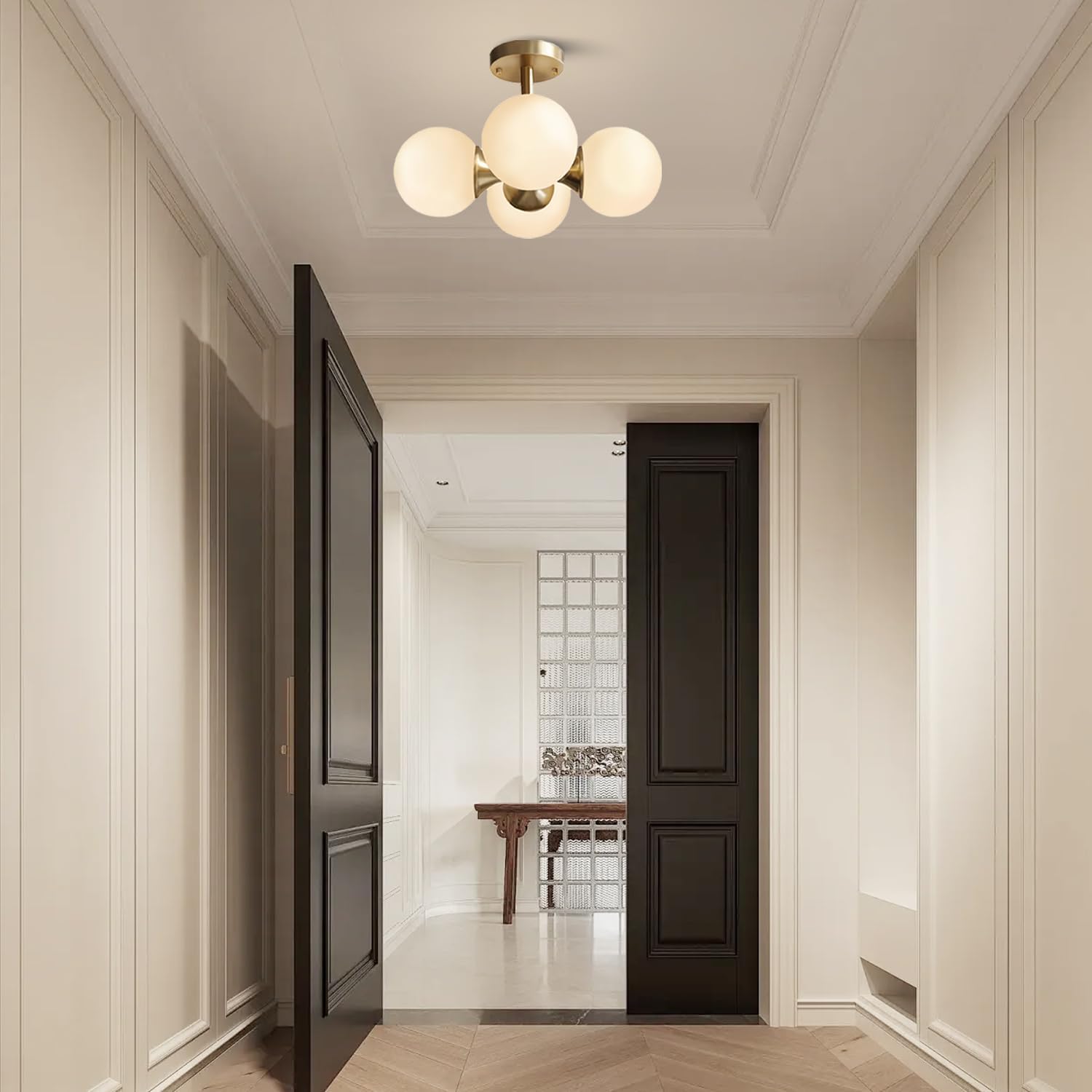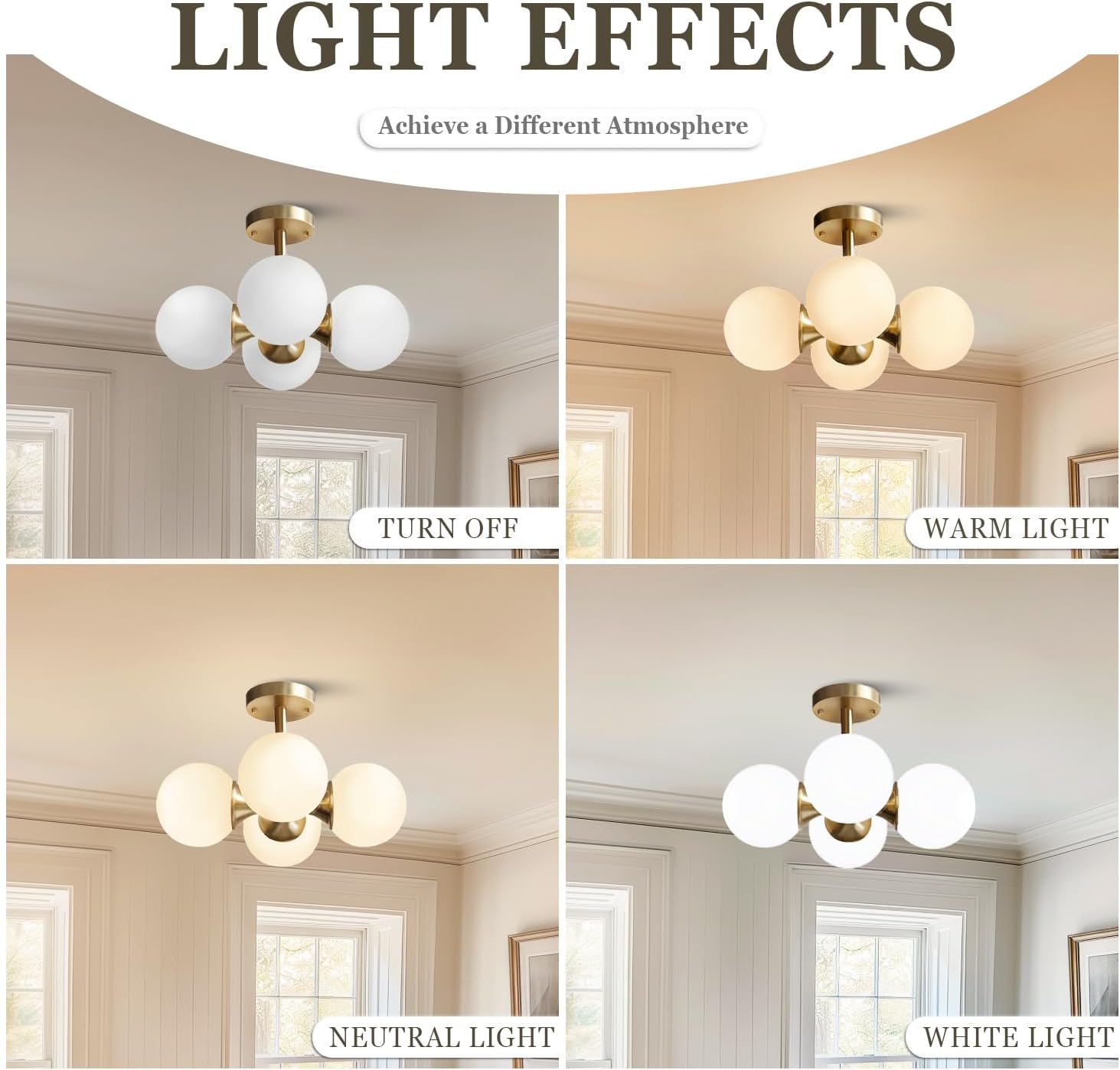 - ❆【Vintage Design】The semi-flush ceiling light featuring a frosted white glass shade and vintage style gold lamp body, bringing a modern twist to its avant-garde retro design, which is not only a ceiling light but also an ornament.