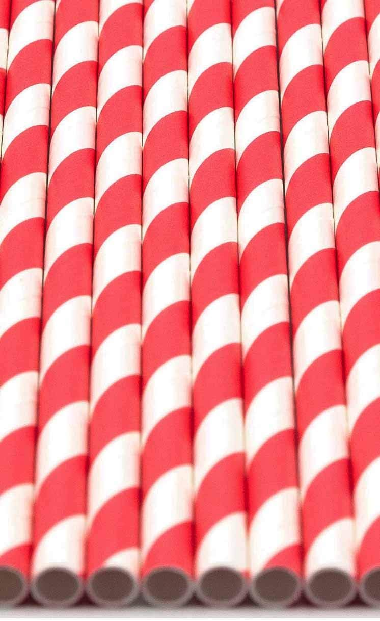 - Pack of 300 Red Swirls paper straws that are 7.75” long and have a diameter of 0.25”. Made with 4-ply paper which translates into thicker and more resilient straws that won’t wilt or change shape in both hot and cold drinks.