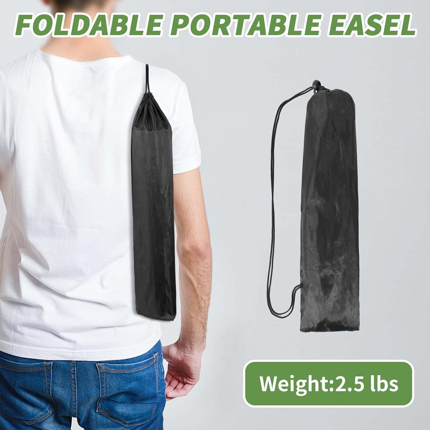 - FOLDING PORTABLE EASEL-Due to its clever design, the 63 inch high floor easel can be folded into 15 inches, making it very easy for us to display and painting outside.Come with a portable bag.