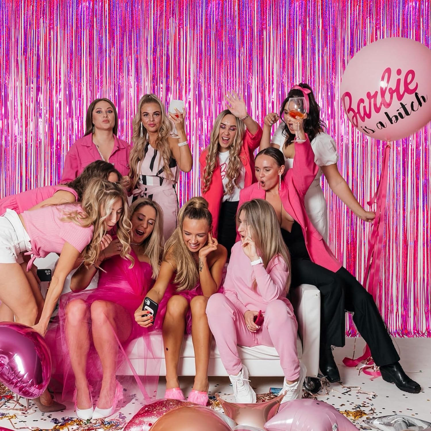 Melsan 2 Pack 3.2 ft x 8.2 ft Hot Pink Tinsel Foil Fringe Curtains Backdrop, Sparkle Foil Tinsel Curtains for Party Picture Area Decoration, Rose Red