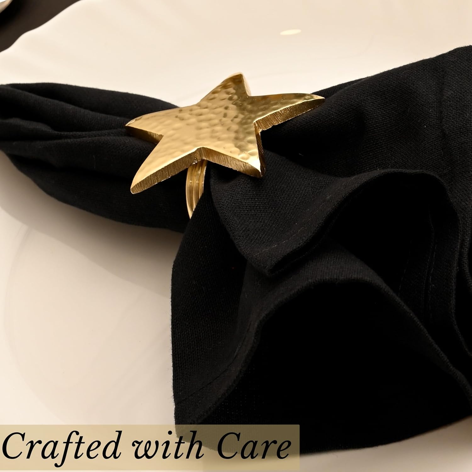 - β SET OF 12 - IDEAL SIZE FOR ALL TABLE SETTINGS: Each gold star napkin rings measures 2.75 x 2.75 x 1.75 inches, perfectly sized to fit standard cloth or paper napkins. A coordinated pack of 12 makes it easy to host gatherings or style a complete festive table.