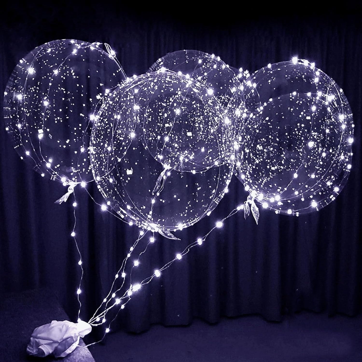 LED Light up Bobo Party Balloons kit 12 Pack-Clear 22 inchs white with Cell Batteries Included Great with Helium or air (cold white, 12 pack)