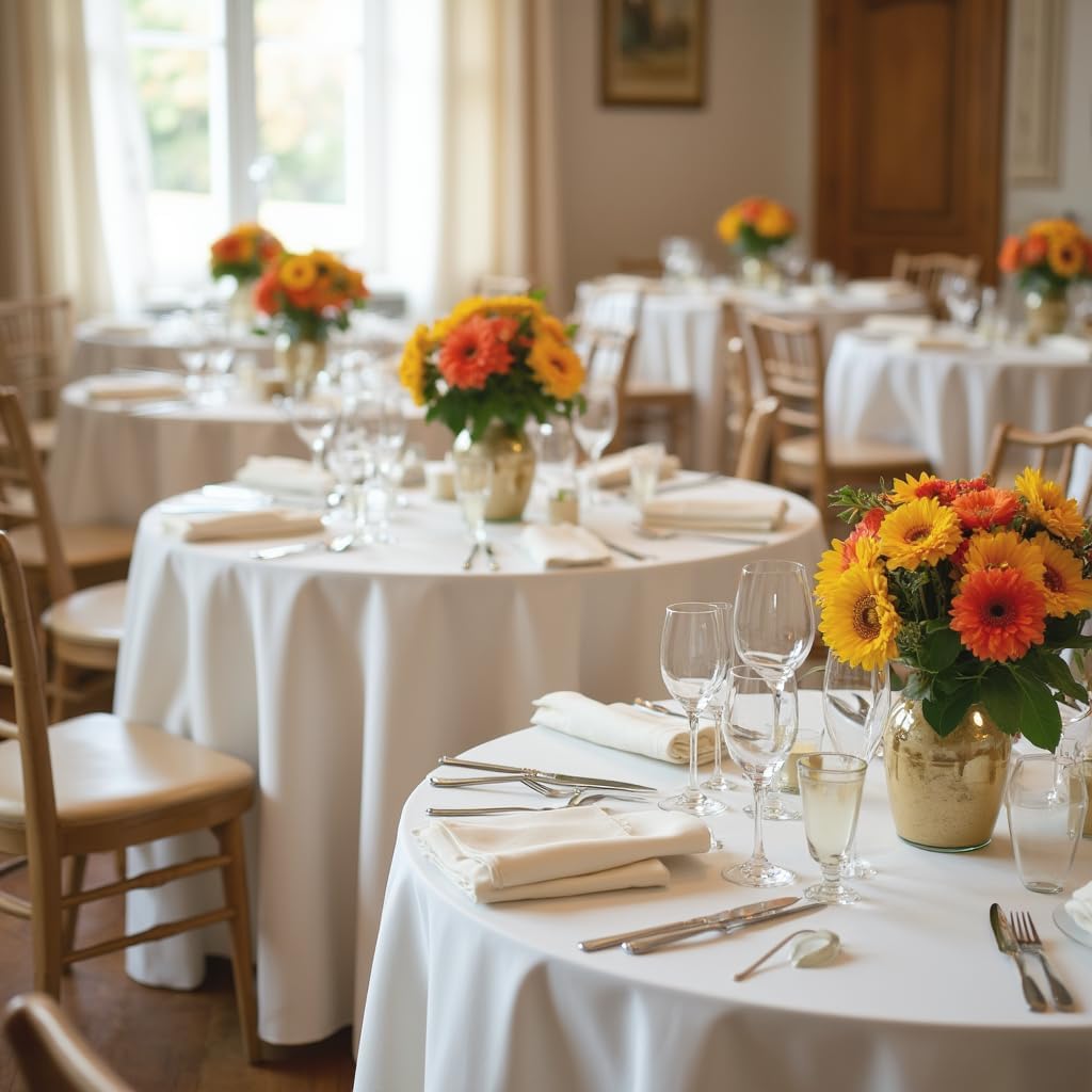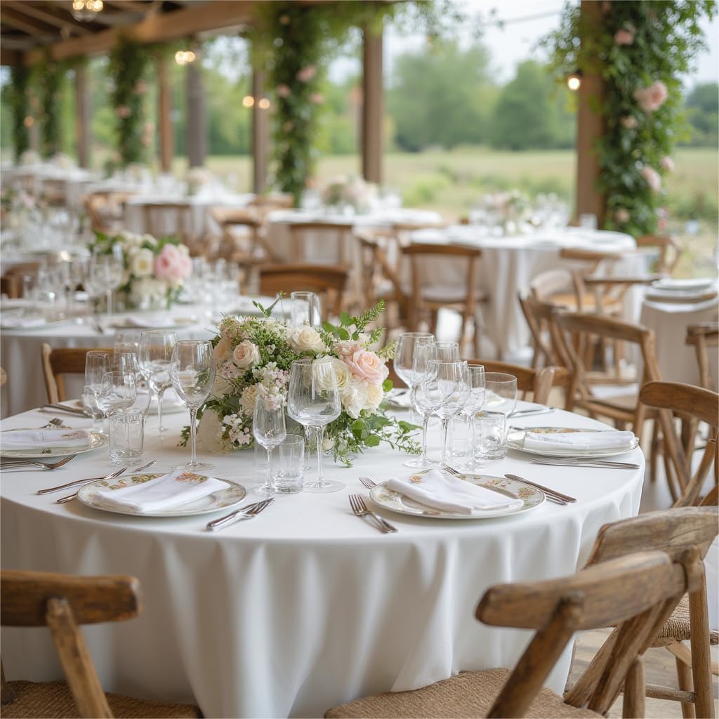 sancua Round Tablecloth - 90 Inch - Water Resistant Spill Proof Washable Polyester Table Cloth Decorative Fabric Table Cover for Dining Tables, Buffet Parties and Camping, White