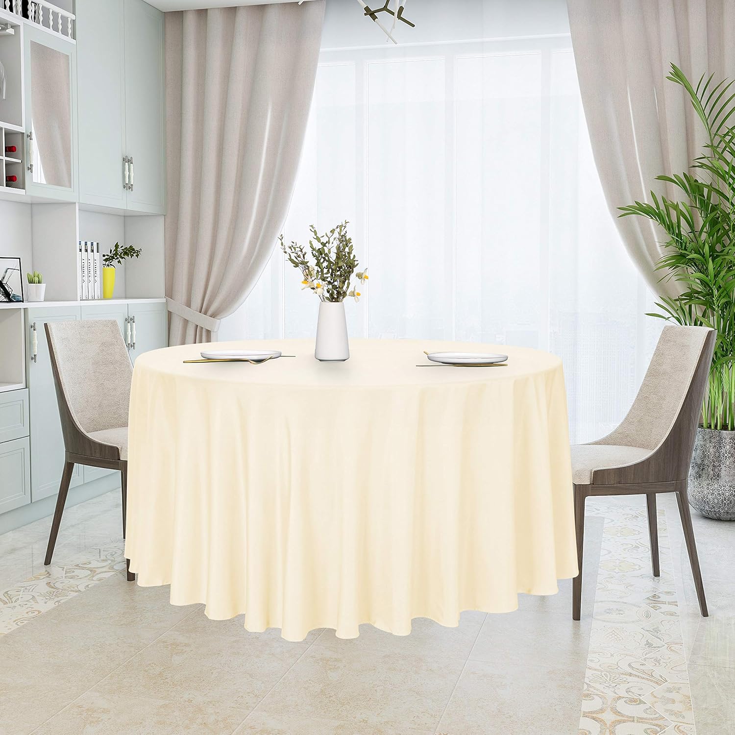 sancua Round Tablecloth - 108 Inch - Water Resistant Spill Proof Washable Polyester Table Cloth Decorative Fabric Table Cover for Dining Tables, Buffet Parties and Camping, Beige