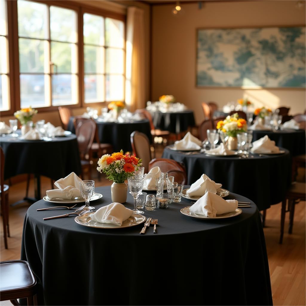 - HIGH QUALITY MATERIAL: Our tablecloth are crafted from high quality durable polyester fabric, perfect to protect and decorate your tables. The package will include 1 piece tablecloth measuring 120 inch round.