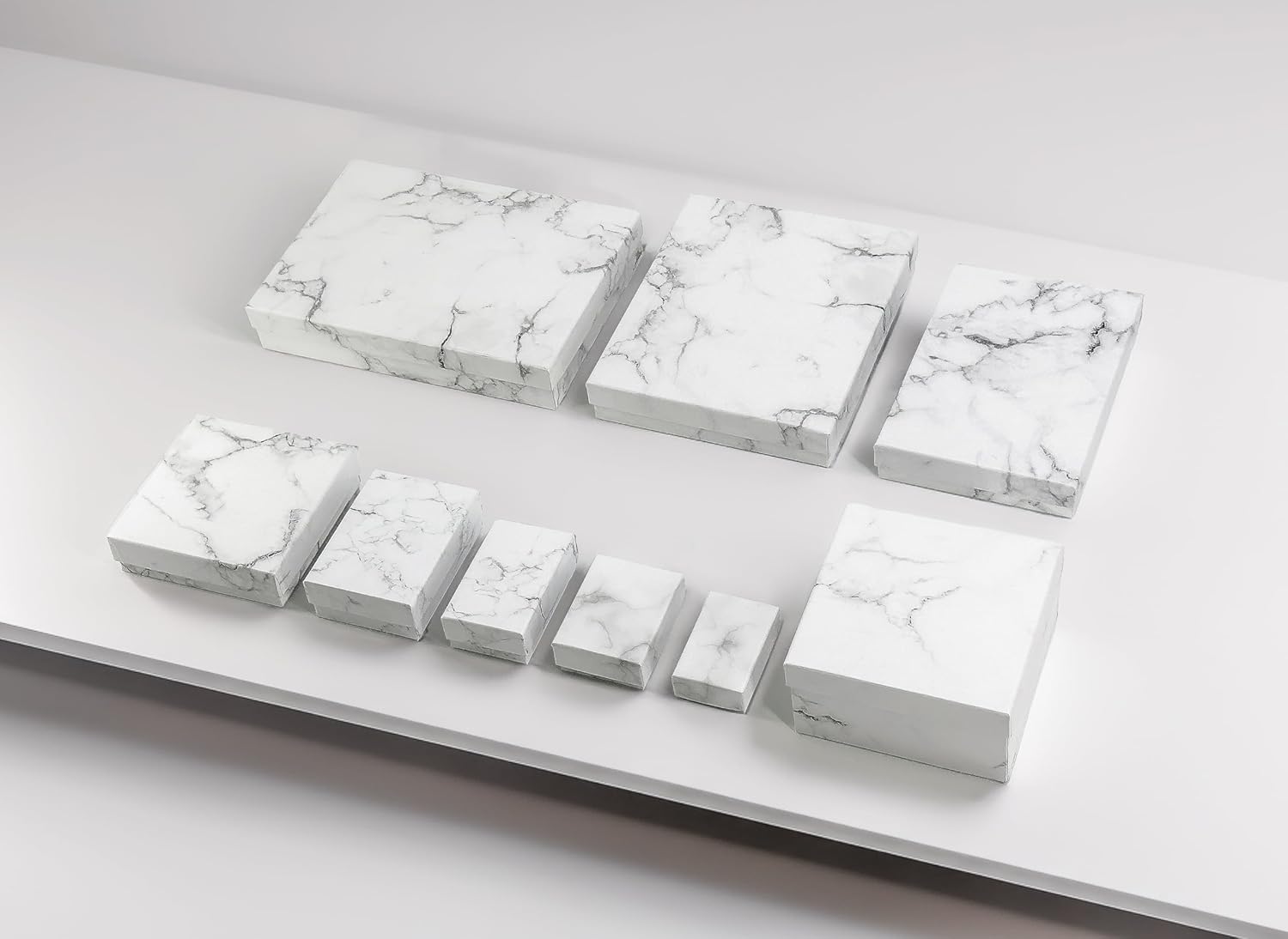 TheDisplayGuys - 25-Pack #53 Kraft Paper Cardboard Gift Boxes/Jewelry Cases w. Cotton Padding & Lid - Marble White - (5.4" x 3.9" x 1.0")